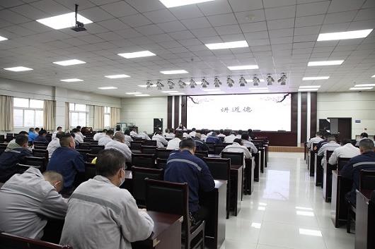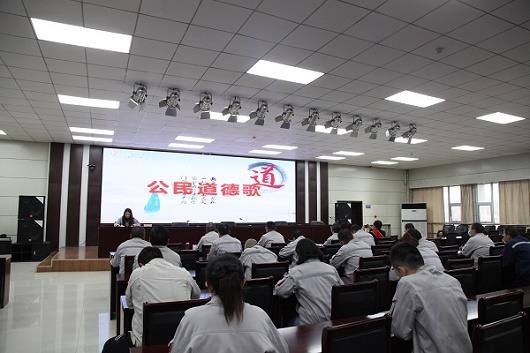 本期“道德講堂”以“賡續(xù)時(shí)代精神 助力企業(yè)發(fā)展”為主題,共分講道德、唱歌曲、學(xué)模范、誦經(jīng)典、看短片、送吉祥六個(gè)環(huán)節(jié)。