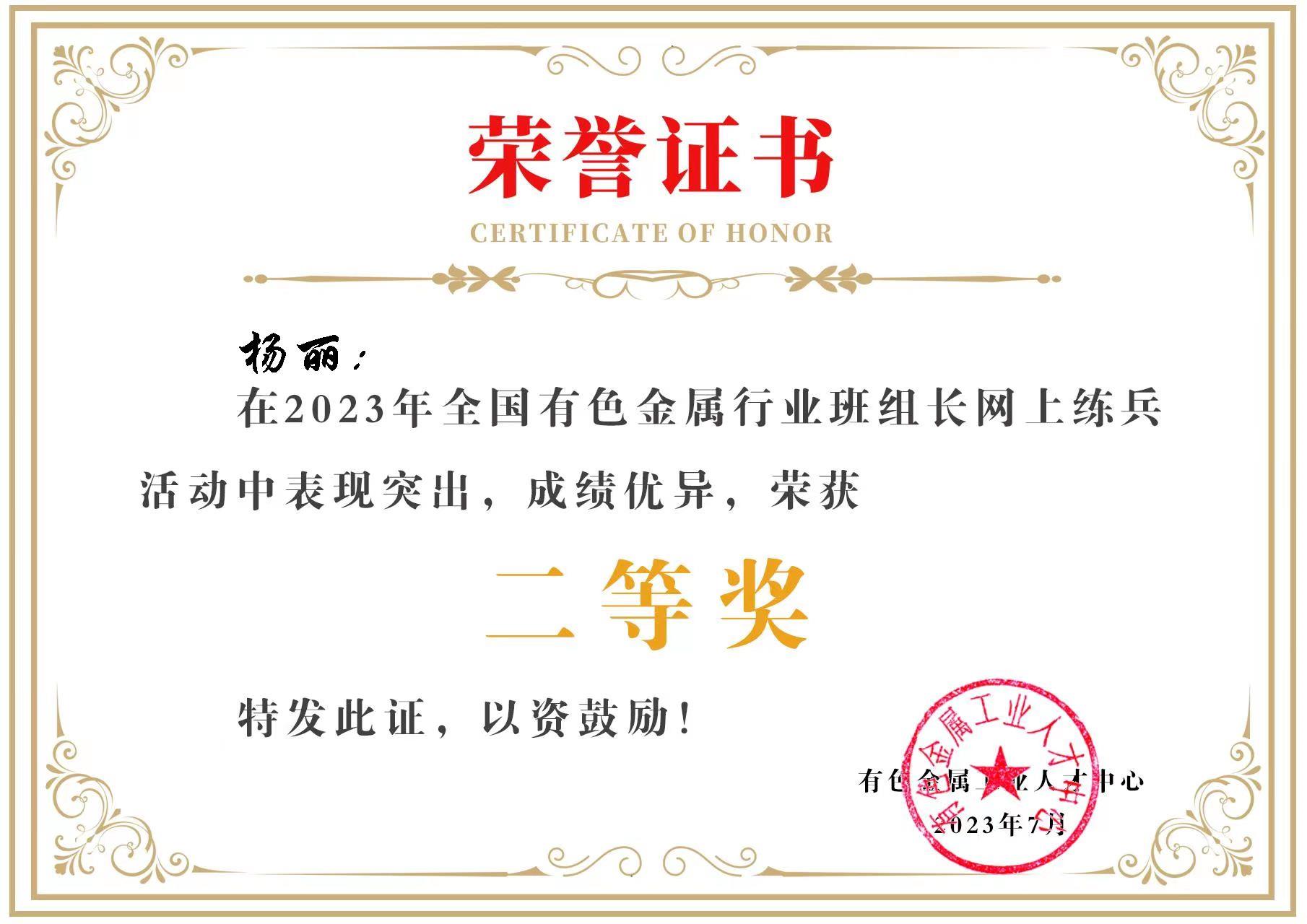 然而,生活的不易并沒有讓楊麗忘記求學(xué)上進(jìn),她酷愛讀書,一有時(shí)間便埋頭苦讀,總結(jié)心得,寫寫記記,曾兩次獲得集團(tuán)公司“書香三八”讀書、家書征文活動(dòng)一等獎(jiǎng),同時(shí),經(jīng)常廢寢忘食鉆研配電工崗位技能,始終堅(jiān)持技術(shù)立身。2023年,先后在全國(guó)有色金屬行業(yè)班組長(zhǎng)網(wǎng)上練兵活動(dòng)中打敗近萬名選手勇奪二等獎(jiǎng),無獨(dú)有偶,在隨后的“中國(guó)銅業(yè)杯”全國(guó)有色金屬行業(yè)班組長(zhǎng)綜合管理技能競(jìng)賽中又榮獲個(gè)人獎(jiǎng)三等獎(jiǎng),身邊的職工及家人都紛紛樹起大拇指,稱她是“逆境中成長(zhǎng)起來的女漢子”。