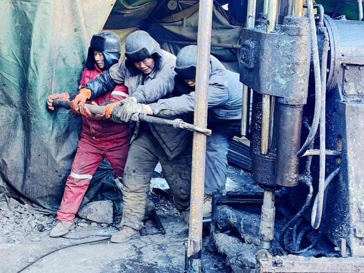 前段時間,鉆掘工程勘察院已經(jīng)在恰冬礦區(qū)順利完成了220米和250米的淺孔。魏少強負責的這口井,設(shè)計井深1000米,目前已經(jīng)打到950米,要不了幾天就會完井。完井后,他們將稍作休整,為接下來坑內(nèi)鉆做好準備。此外,鉆掘工程勘察院還把圍繞不同地質(zhì)條件開展深孔巖心鉆探作為重點技術(shù)攻關(guān)方向,在甘肅和陜南有兩個千米以上的鉆孔正在緊張施工。