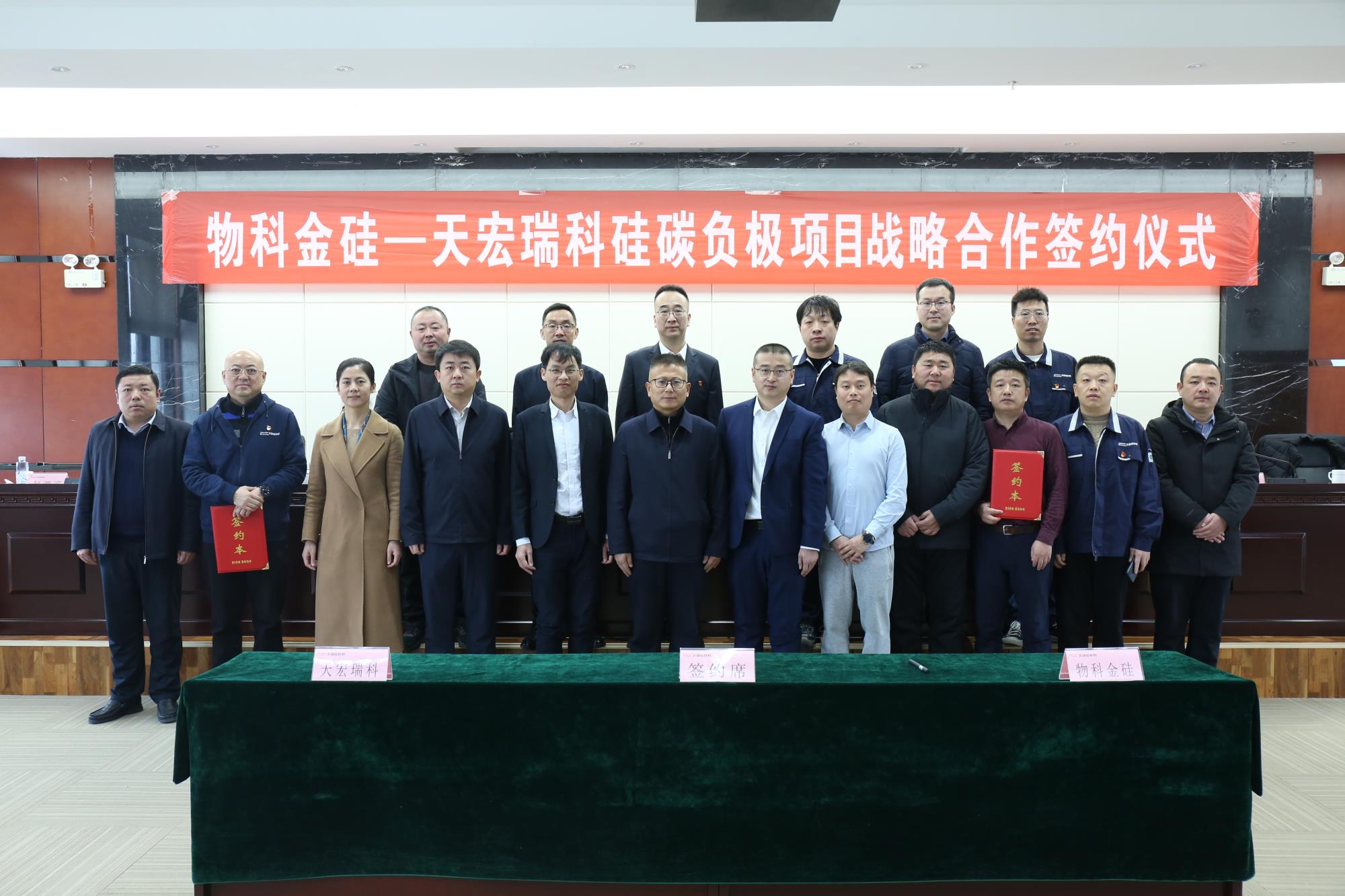 2024年1月30日,陜西有色天宏瑞科硅材料有限責任公司(以下簡稱天瑞硅材料)與四川物科金硅新材料科技有限責任公司(以下簡稱物科金硅)就硅碳負極項目戰(zhàn)略合作舉行了簽約儀式。佳縣縣委書記姬躍飛,天瑞硅材料黨委副書記、總經理徐巖,佳縣人民政府及榆佳經開區(qū)管委會相關領導出席見證。
