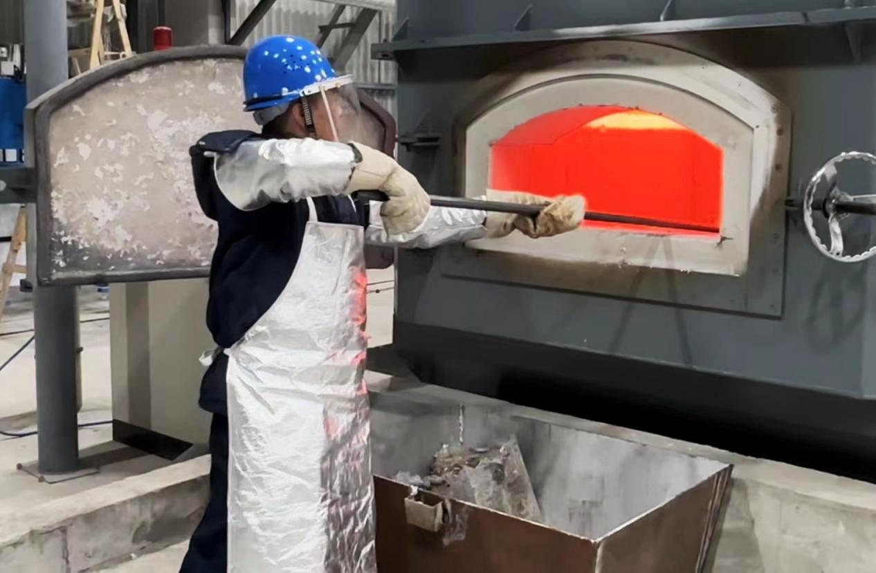 中試鑄造生產線工作人員正在進行清渣作業(yè)