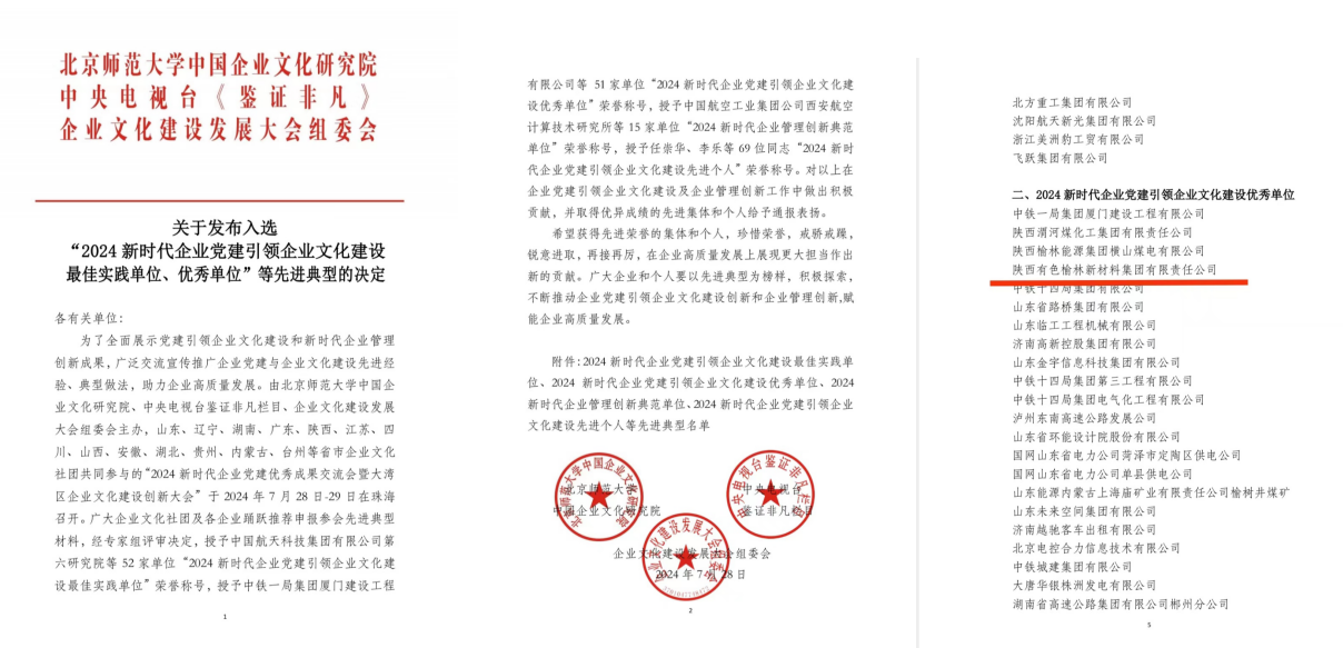 7月28日至29日,2024新時(shí)代企業(yè)黨建優(yōu)秀成果交流會(huì)暨大灣區(qū)企業(yè)文化建設(shè)創(chuàng)新大會(huì)在廣東珠海召開。會(huì)上發(fā)布了“2024新時(shí)代企業(yè)黨建引領(lǐng)企業(yè)文化建設(shè)最佳實(shí)踐單位、優(yōu)秀單位”等先進(jìn)典型名單。通過專家評(píng)審,榆林新材料集團(tuán)榮獲“2024新時(shí)代企業(yè)黨建引領(lǐng)企業(yè)文化建設(shè)優(yōu)秀單位”。