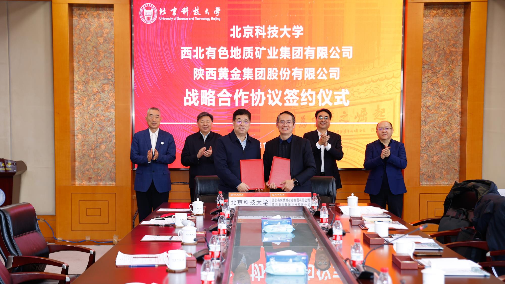 12月24日,地礦集團(tuán)、黃金集團(tuán)與北京科技大學(xué)簽訂戰(zhàn)略合作協(xié)議,聚焦綠色勘查開(kāi)發(fā)、資源綜合利用、人才培養(yǎng)等領(lǐng)域開(kāi)展全方位合作,通過(guò)優(yōu)勢(shì)互補(bǔ)、資源共享,共同推動(dòng)產(chǎn)學(xué)研深度融合,為實(shí)現(xiàn)產(chǎn)業(yè)高質(zhì)量發(fā)展增添新引擎。陜西有色金屬集團(tuán)董事、兩集團(tuán)黨委書(shū)記、董事長(zhǎng)秦西社,中國(guó)工程院院士、北京科技大學(xué)教授、博士生導(dǎo)師吳愛(ài)祥,北京科技大學(xué)校長(zhǎng)楊仁樹(shù)出席簽約儀式。兩集團(tuán)黨委委員、副總經(jīng)理、總工程師王瑞廷,北京科技大學(xué)黨委副書(shū)記孫景宏代表雙方簽約。