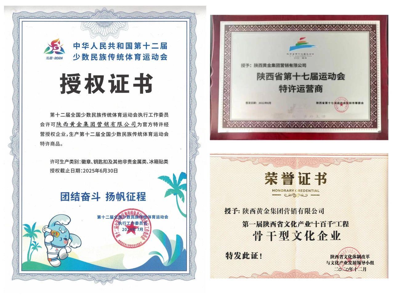 近年來,黃金集團充分發(fā)揮全產(chǎn)業(yè)鏈、全資質(zhì)等優(yōu)勢,精心培育打造了獨具特色的“秦金”品牌,并在全國貴金屬銷售領域贏得了較高知名度和影響力?!扒亟稹鄙虡吮辉u為“陜西省著名商標”,“秦金”品牌標準金被認定為“陜西工業(yè)精品”“陜西省知名品牌產(chǎn)品”,權(quán)屬營銷公司連續(xù)獲評第一屆、第二屆陜西省文化產(chǎn)業(yè)“十百千”工程骨干型文化企業(yè),“秦金”品牌貴金屬投資文創(chuàng)產(chǎn)品已在全國二十余家銀行的上萬個網(wǎng)點銷售。進軍貴金屬文體旅博產(chǎn)業(yè)是黃金集團延鏈、補鏈、強鏈的重要舉措,四年來連續(xù)助力國家及省上多個重要體育賽事,圓滿完成2021年十四運會全品類特許運營、2022年陜西省十七運會特許運營、2023年第一屆學青會特許運營、陜西省第十屆藝術節(jié)運營、2024年第十二屆全國少數(shù)民族運動會特許運營,榮獲“陜西省第十七屆運動會特別協(xié)作企業(yè)”稱號并獲頒“集體嘉獎”榮譽獎牌。一系列成績與突破,充分展現(xiàn)了黃金集團在服務國家級體育賽事方面的擔當與貢獻,彰顯了集團的核心競爭力與專業(yè)化能力。此次成功競獲十五運會貴金屬制品類特許生產(chǎn)商,對在大灣區(qū)乃至全國更大范圍內(nèi)拓展市場、建立合作伙伴關系等具有重要意義。