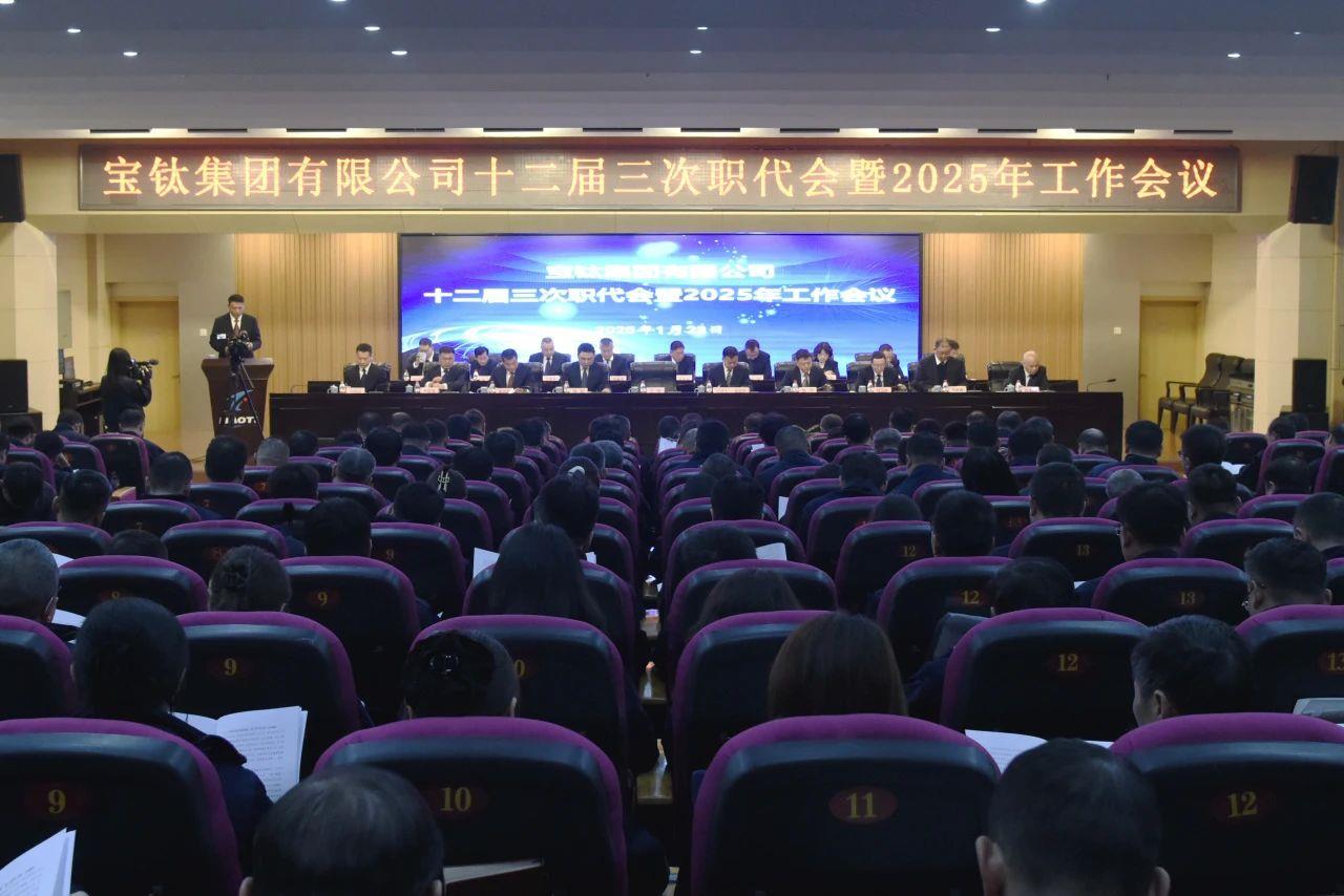 經(jīng)過前期的預(yù)備會議,1月23日上午,寶鈦集團(tuán)十二屆三次職代會暨2025年工作會議順利召開。寶鈦集團(tuán)黨委書記、董事長、總經(jīng)理王儉作工作報告,黨委副書記、工會主席賀治民主持會議,黨委委員、副總經(jīng)理何聯(lián)國傳達(dá)上級會議精神。