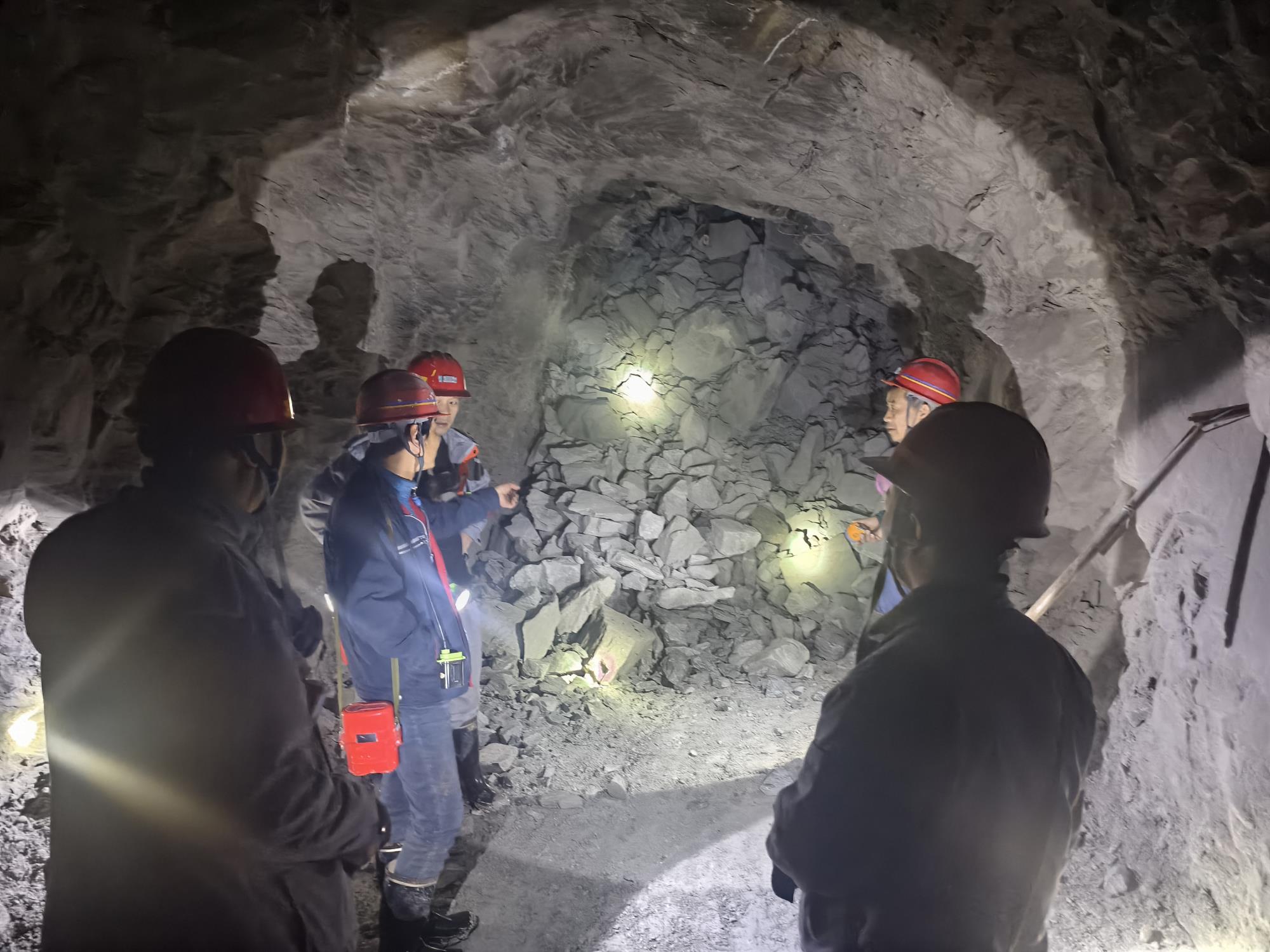 2月3日(大年初六) ,生產(chǎn)技術(shù)部李雷、張佳豪 、楊森對(duì)井下1140米中段出礦斗穿頂板進(jìn)行安全檢查。