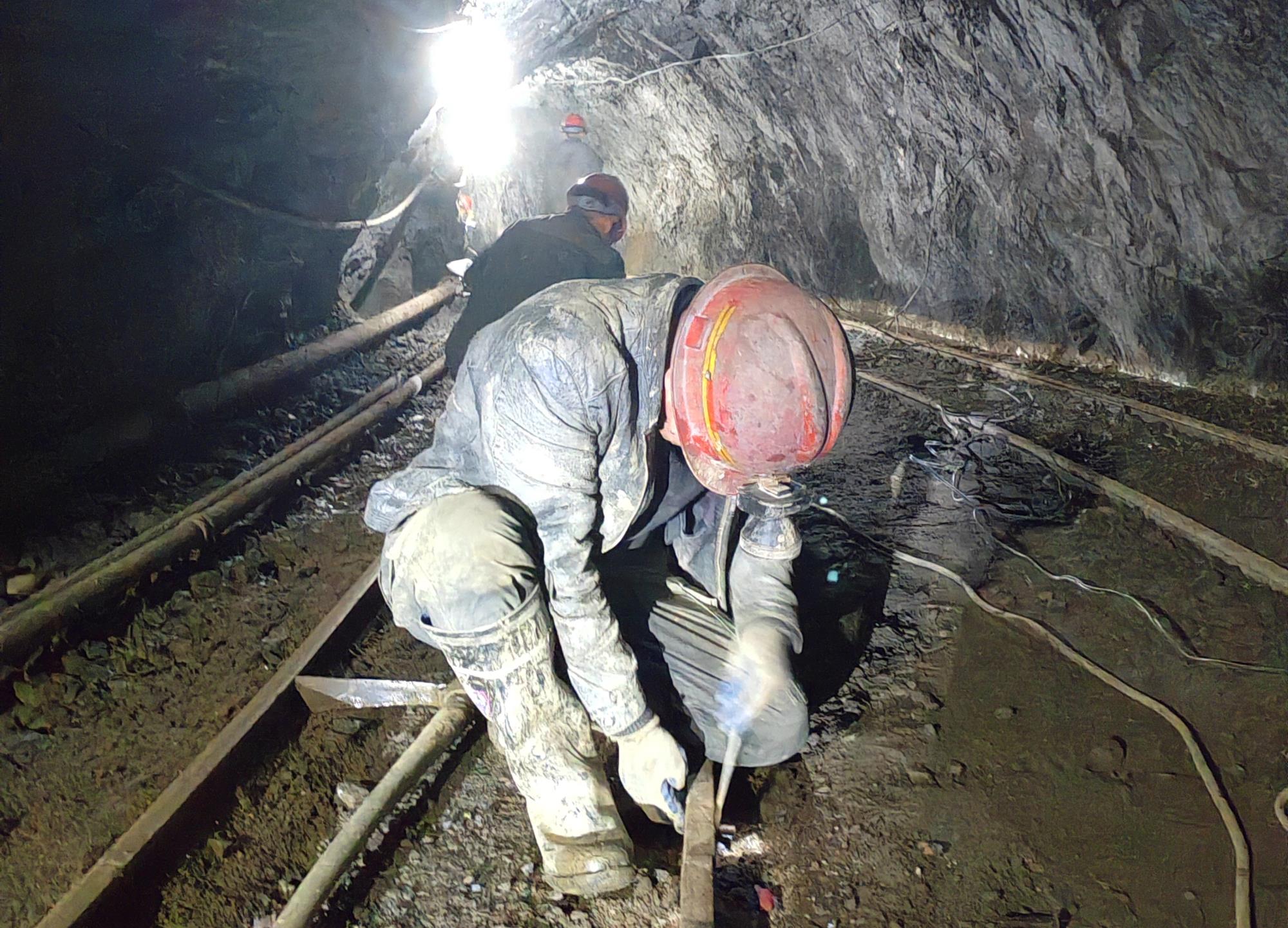 峰崖鉛鋅礦    1月28日(除夕),峰崖鉛鋅礦一線崗位工常大娃在清理坑道排水溝。