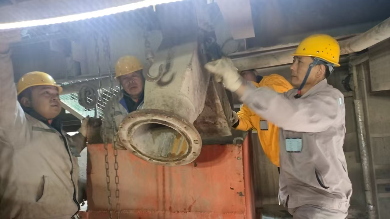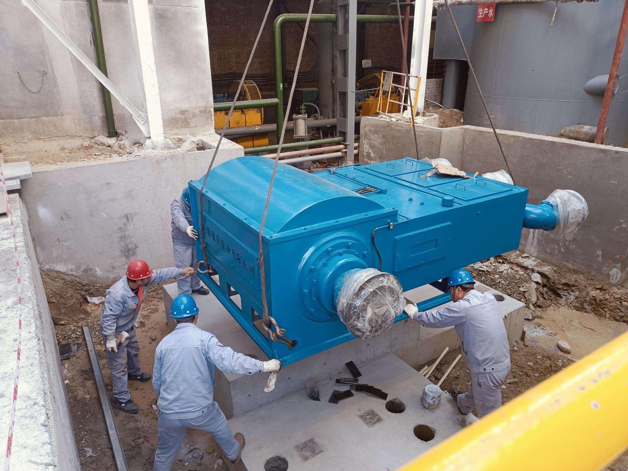 1月31日(大年初三),一選廠機(jī)修工趙永強(qiáng)、孫志剛、高成軍、康文濤正在吊裝新設(shè)備。