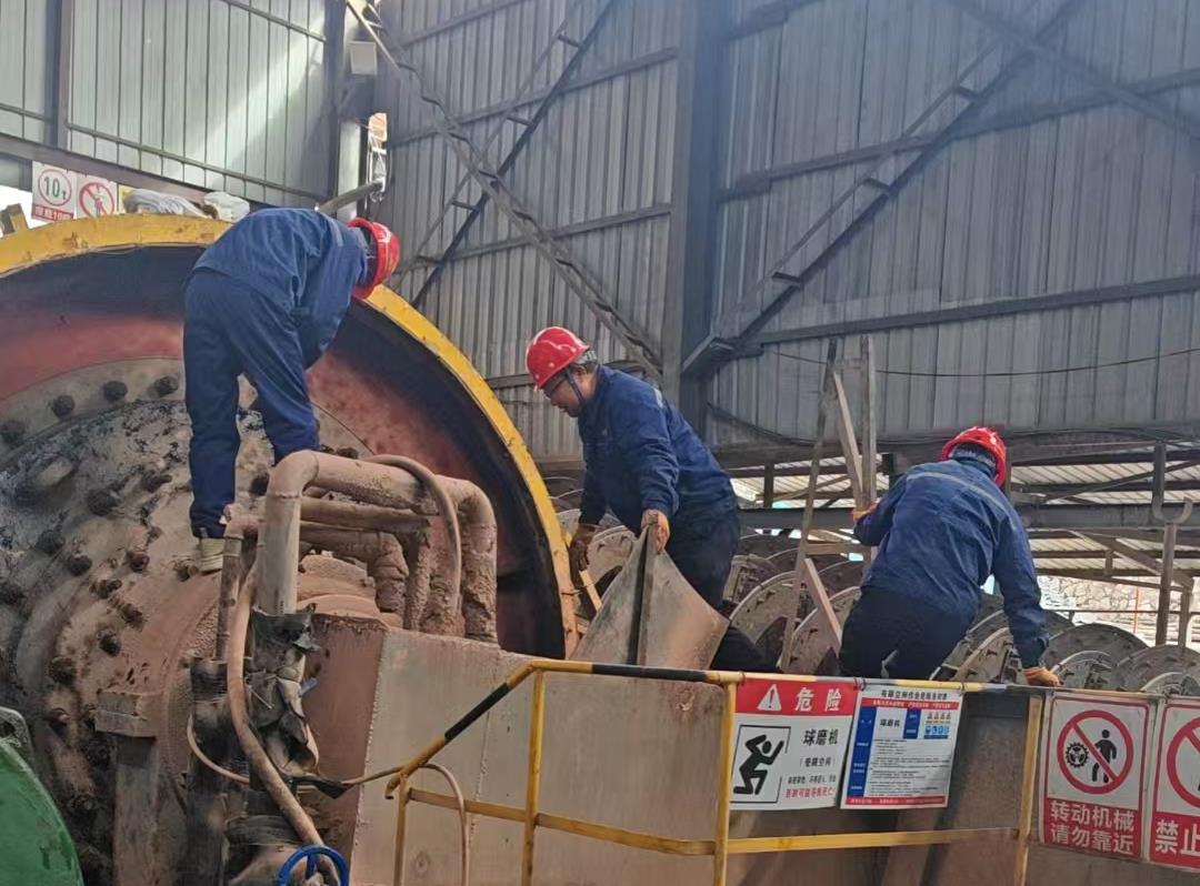 山陽(yáng)秦金  2月3日(大年初六),為實(shí)現(xiàn)一季度開(kāi)門(mén)紅、開(kāi)門(mén)穩(wěn),山陽(yáng)秦金職工對(duì)選礦部球磨工段球磨機(jī)等設(shè)備進(jìn)行維修保養(yǎng)。