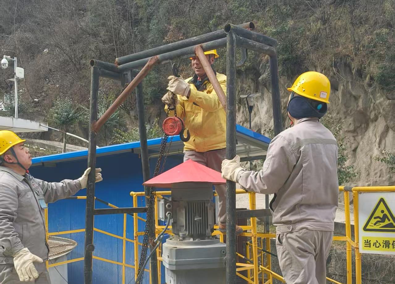 山陽(yáng)秦鼎    1月31日(大年初三),山陽(yáng)秦鼎公司組織一線崗位工檢修浸吸槽減速機(jī)。