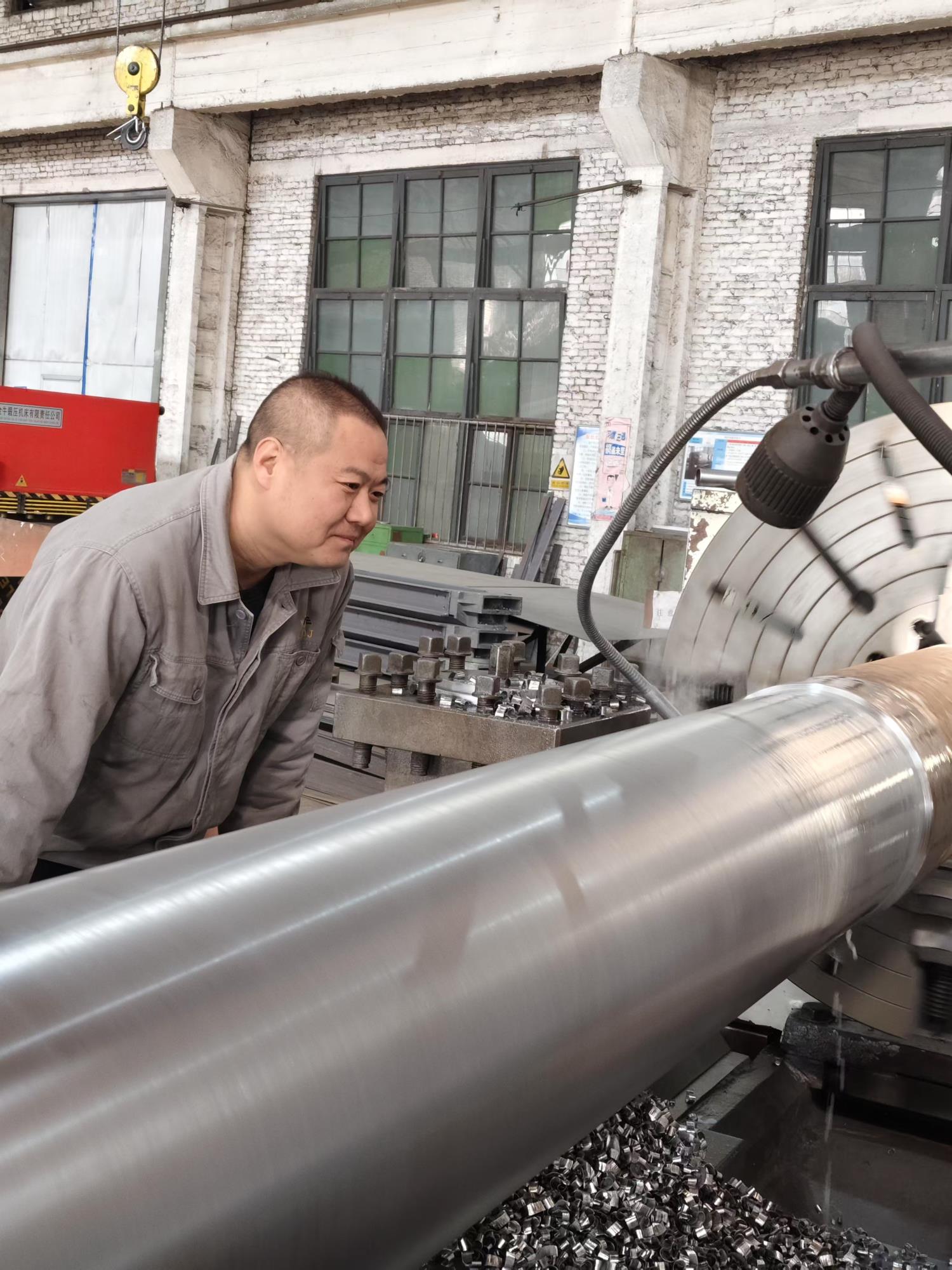 2月4日(正月初七),機(jī)械院金工車(chē)間車(chē)工張亞衛(wèi)正在加工鈦棒。