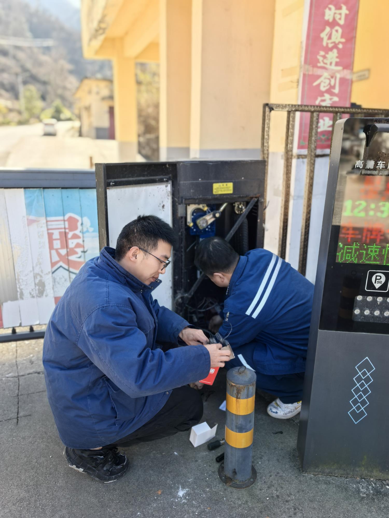 華源礦業(yè)  1月30日(大年初二),后勤部職工陳利軍、閆晶晶正在維保工作區(qū)車(chē)輛道閘。
