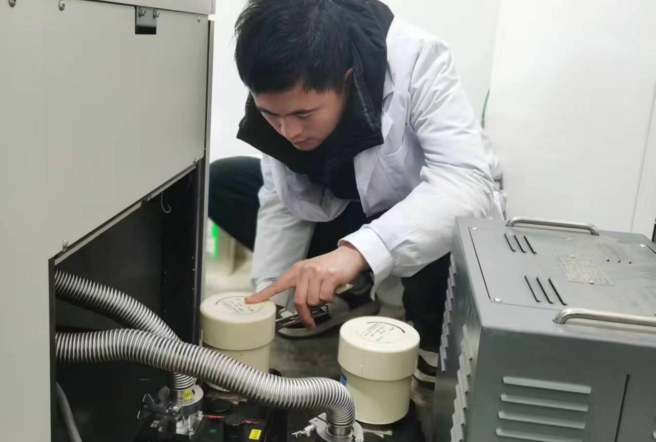 華拓檢測(cè)公司  春節(jié)期間,檢測(cè)員李釗對(duì)X-射線熒光光譜儀進(jìn)行維護(hù)保養(yǎng)。
