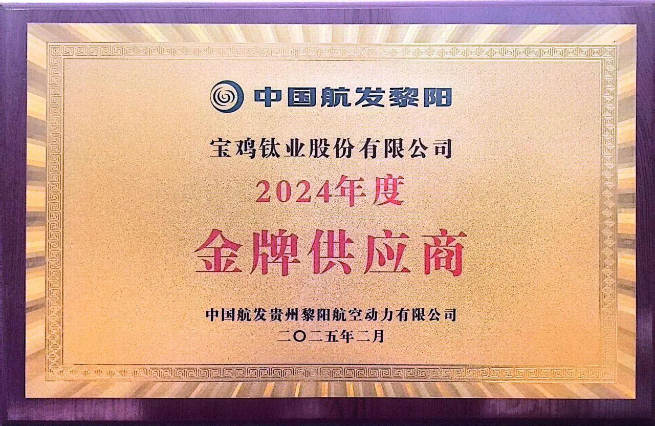 近日,在中國(guó)航發(fā)貴州黎陽(yáng)航空動(dòng)力有限公司(以下簡(jiǎn)稱中國(guó)航發(fā)黎陽(yáng))2024年度供應(yīng)商大會(huì)上,寶鈦股份憑借在鈦合金材料研發(fā)、生產(chǎn)交付及服務(wù)保障領(lǐng)域的卓越表現(xiàn),從數(shù)百家供應(yīng)商中脫穎而出,榮獲“2024年度金牌供應(yīng)商”稱號(hào)。