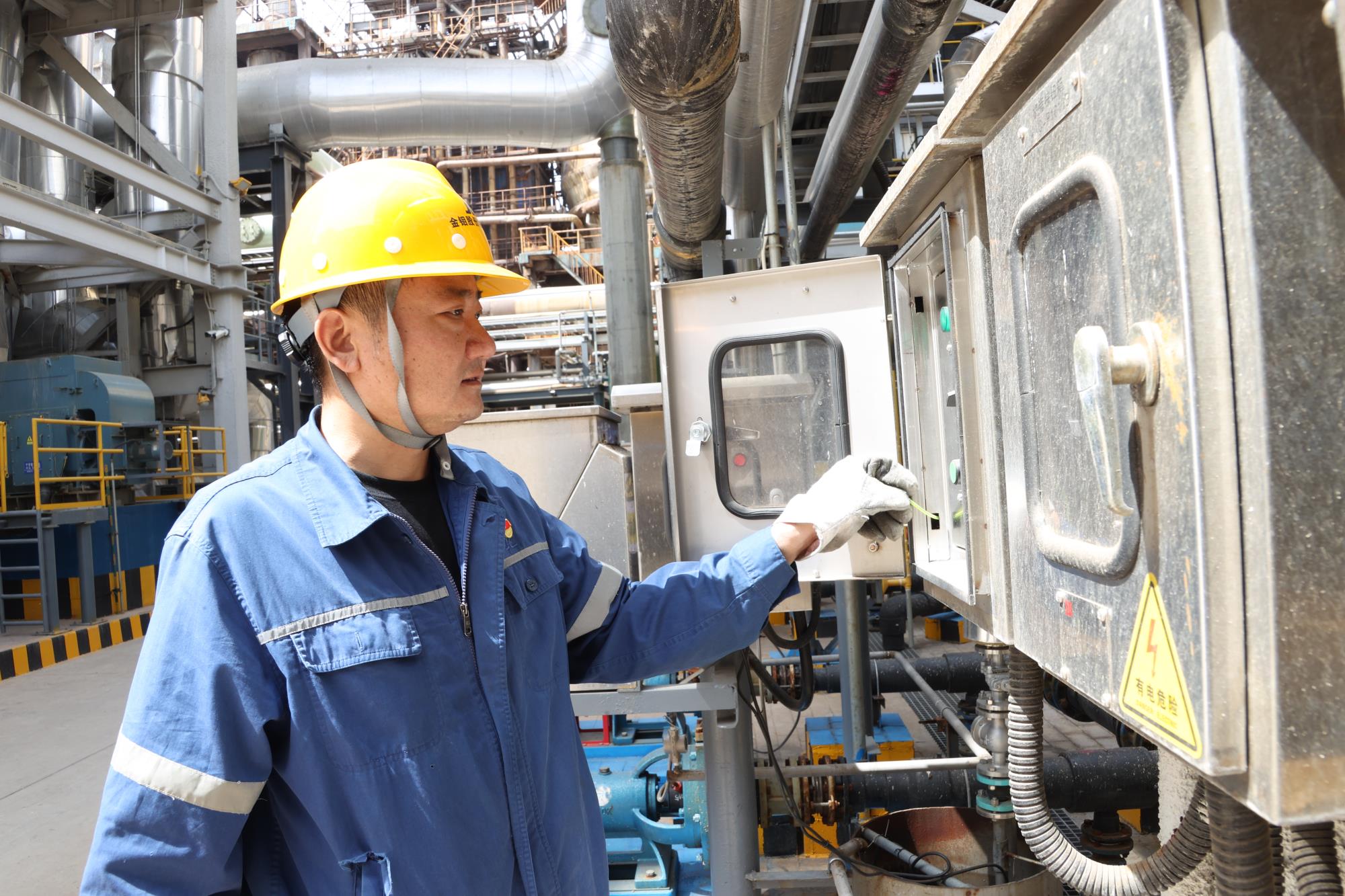 晨光熹微,焙燒分廠已響起鏗鏘的金屬碰撞聲。侯一臣正俯身于設(shè)備之間進(jìn)行檢修。他目光炯炯,額頭上落下豆大的汗珠,防塵面罩下是臉上唯一沒有被粉塵污染的部位。像往常一樣,侯一臣每天上班的第一件事就是巡檢。工作15年,他熟悉所有設(shè)備的每一個細(xì)節(jié),憑借豐富的經(jīng)驗,靠手摸眼觀,就可以精準(zhǔn)判斷設(shè)備的健康狀態(tài),這一檢修絕活,正是他日復(fù)一日在油污與粉塵中淬煉出的真功夫。