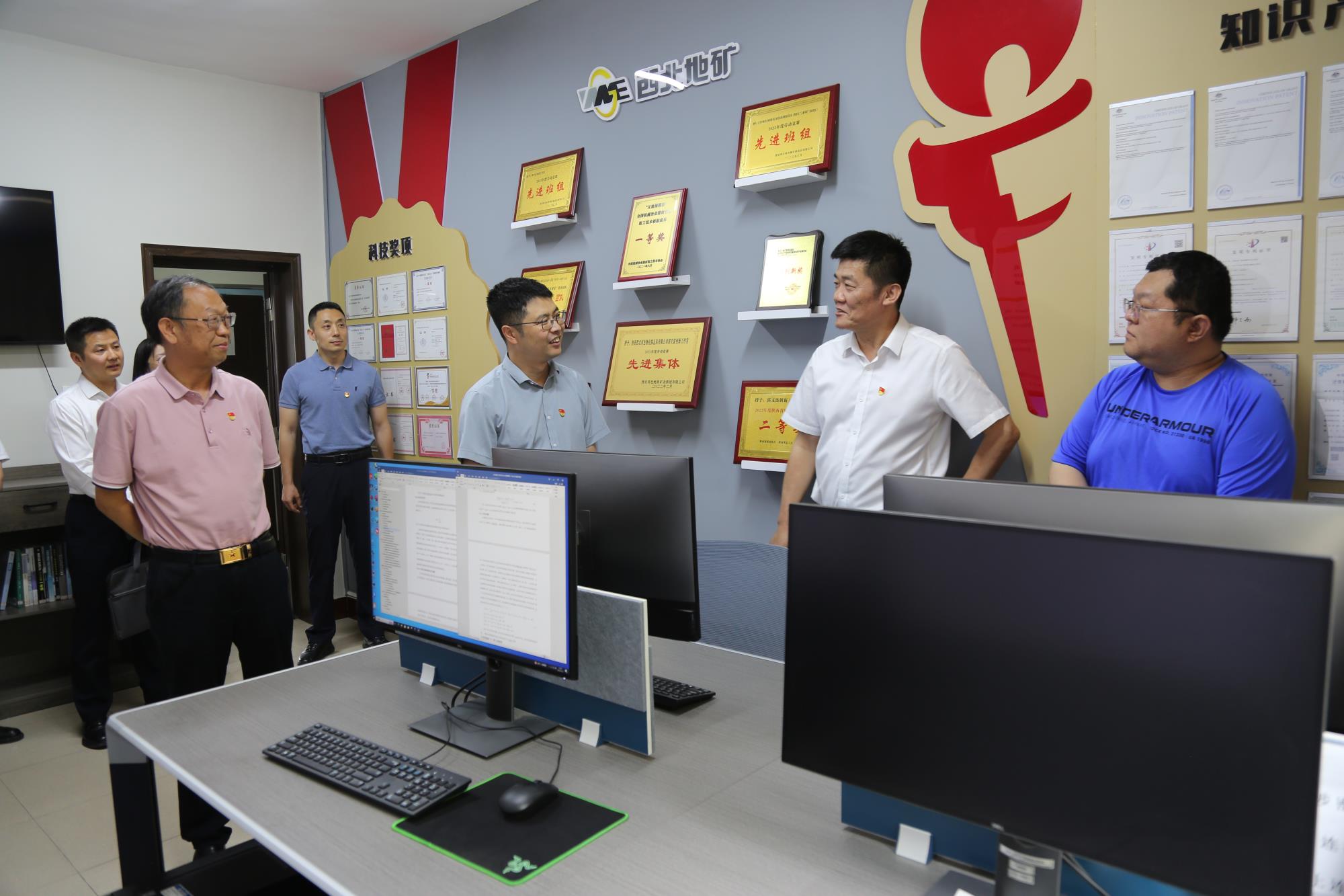 最后,王小慶一行還參觀了郭文波創(chuàng)新工作室數(shù)據(jù)處理中心及新研發(fā)的瞬變電磁設(shè)備, 陜西有色金屬集團(tuán)黨委宣傳部相關(guān)人員陪同調(diào)研。地礦集團(tuán)、黃金集團(tuán)工會副主席、黨委宣傳部部長,物化探總隊(duì)公司領(lǐng)導(dǎo)班子成員、中層干部以及機(jī)關(guān)支部全體黨員聆聽宣講,相關(guān)部門負(fù)責(zé)人參加座談。