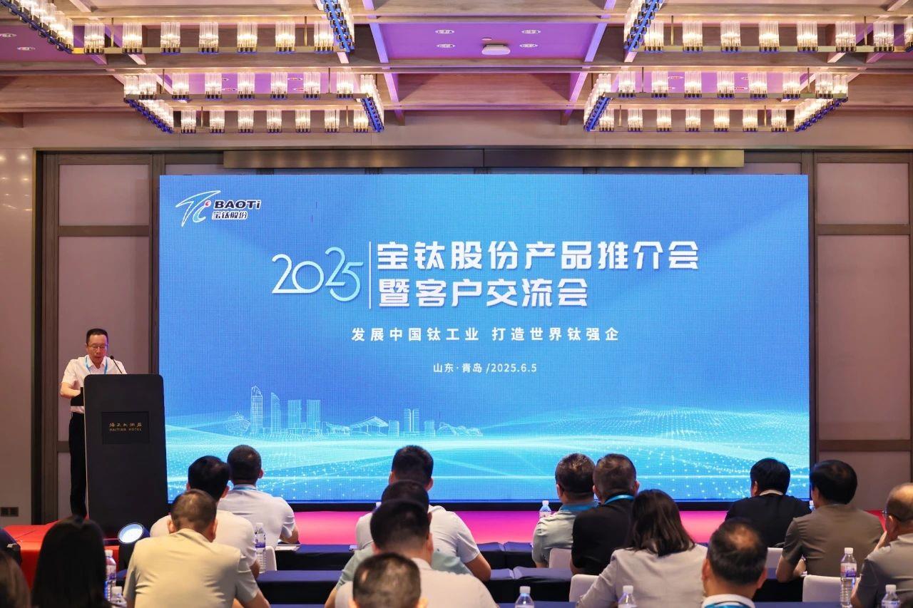 6月5日,寶鈦股份2025年產(chǎn)品推介會(huì)暨客戶交流會(huì)在青島舉行。45家合作單位、77位行業(yè)伙伴齊聚一堂,共話鈦業(yè)發(fā)展新機(jī)遇,共繪合作新藍(lán)圖。寶鈦集團(tuán)副總經(jīng)理、總工程師,寶鈦股份董事何書林致歡迎辭。寶鈦股份副總經(jīng)理容耀主持會(huì)議。