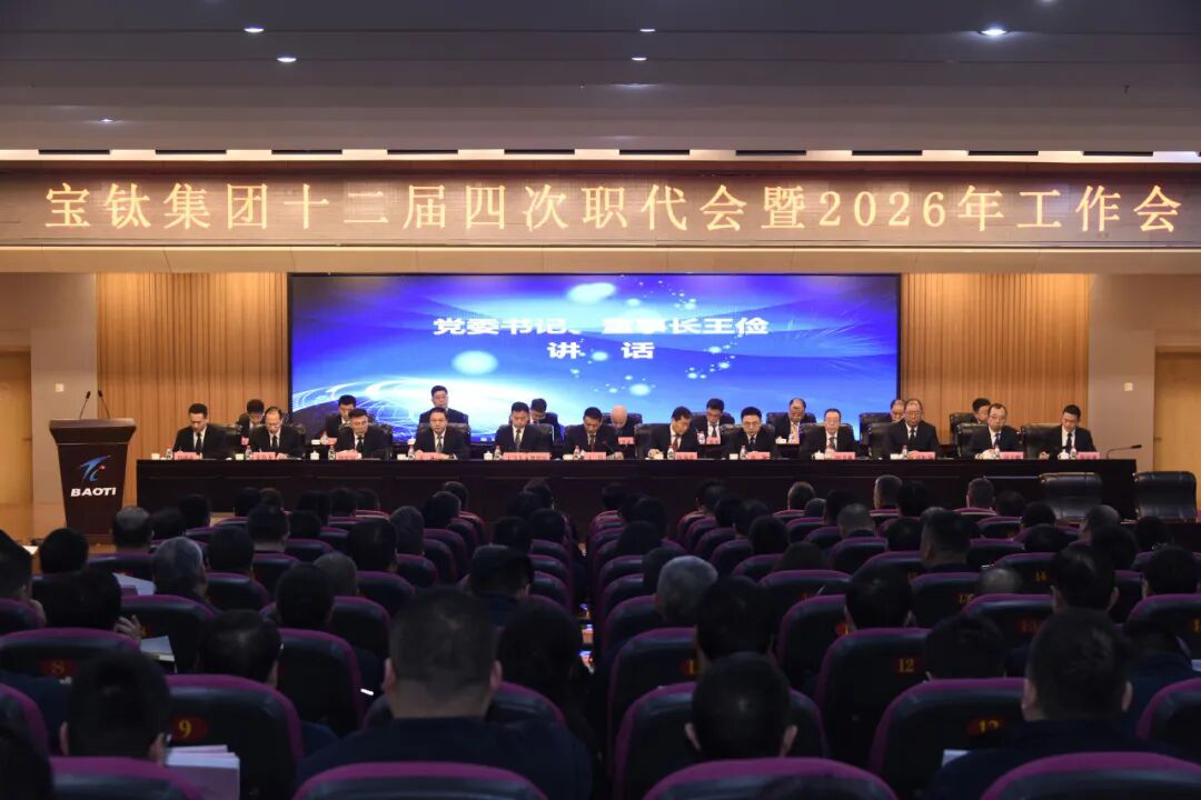 2月3日,寶鈦集團(tuán)十二屆四次職代會(huì)暨2026年工作會(huì)議在寶鈦賓館學(xué)術(shù)報(bào)告廳召開,會(huì)議認(rèn)真學(xué)習(xí)貫徹黨的二十大精神、黨的二十屆四中全會(huì)精神,傳達(dá)學(xué)習(xí)陜西有色金屬集團(tuán)三屆四次職代會(huì)暨2026年工作會(huì)議精神,全面總結(jié)2025年工作及成績,安排部署2026年重點(diǎn)任務(wù)。寶鈦集團(tuán)黨委書記、董事長王儉出席會(huì)議并講話,黨委副書記、總經(jīng)理陳戰(zhàn)乾作工作報(bào)告,黨委副書記、工會(huì)主席賀治民主持會(huì)議。