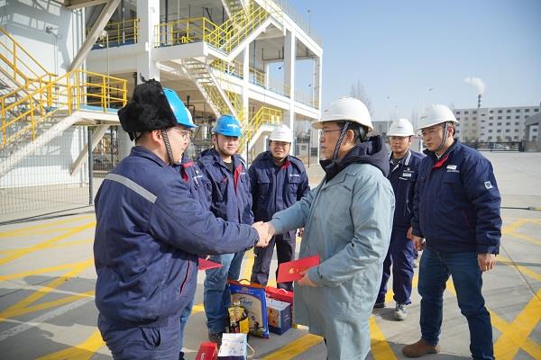 在天宏瑞科生產(chǎn)現(xiàn)場,檢查組實(shí)地查看二期項(xiàng)目建設(shè)進(jìn)度,檢查春節(jié)及兩會期間運(yùn)行保障、安全環(huán)保管理、信訪維穩(wěn)、全年生產(chǎn)經(jīng)營重點(diǎn)工作安排、重大經(jīng)營風(fēng)險(xiǎn)防控、執(zhí)紀(jì)監(jiān)督等相關(guān)信息。檢查期間,李金濤慰問了困難黨員和困難職工,與他們親切交談,深入了解工作生活近況。