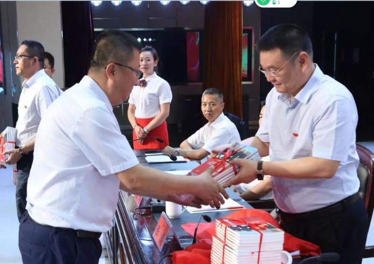 會上舉行了授書儀式,陳書記代表公司黨委向各二級黨委發(fā)放了紀實文學(xué)《梁家河》書籍。
