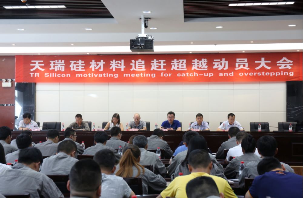 為全面落實(shí)習(xí)近平總書記來陜講話精神以及陜西省第十三次黨代會(huì)精神,動(dòng)員廣大職工凝心聚力,追趕超越,為項(xiàng)目建設(shè)貢獻(xiàn)全部力量,7月10日,天瑞硅材料召開了以“凝心聚力抓建設(shè)、追趕超越促發(fā)展”為主題的追趕超越動(dòng)員大會(huì),公司領(lǐng)導(dǎo)、各部室負(fù)責(zé)人及職工代表110余人參加了會(huì)議。會(huì)議由天瑞硅材料黨委副書記、紀(jì)委書記韓秋同志主持。
