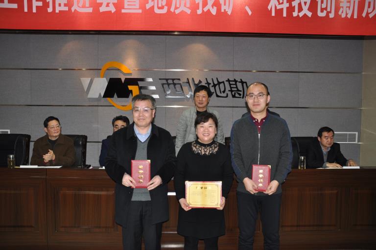 會議對地礦集團(tuán)、黃金集團(tuán)地質(zhì)找礦和科技創(chuàng)新成果進(jìn)行了表彰獎勵。授予713總隊、山陽秦鼎礦業(yè)有限公司“2018年度地質(zhì)找礦發(fā)現(xiàn)獎二等獎”,獎勵胡遠(yuǎn)平、胡興旺、王亞偉、王向陽、李劍斌等技術(shù)人員20萬元;授予“智能化自動注射進(jìn)樣多通道原子熒光光度計的研制與應(yīng)用技術(shù)研究”項目“科技創(chuàng)新成果獎”,獎勵3萬元;授予李日升博士“先進(jìn)科技工作者”榮譽稱號,獎勵5千元;授予地礦集團(tuán)地球物理院士專家工作站“先進(jìn)科技集體”榮譽稱號,獎勵1萬元;授予陜西省貴金屬材料創(chuàng)新中心“2018年度科技創(chuàng)新突出貢獻(xiàn)獎”,獎勵3萬元。地礦集團(tuán)、黃金集團(tuán)領(lǐng)導(dǎo)為獲獎代表頒發(fā)了證書和獎金。