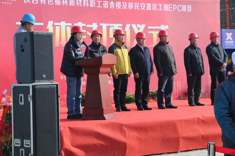 11月22日上午11點(diǎn),由西安勘察院承建的榆林新材料職工宿舍及移民安置區(qū)工程EPC項(xiàng)目舉行了職工宿舍樓封頂儀式。榆林新材料總經(jīng)理、黨委副書(shū)記柳曉峰,紀(jì)委書(shū)記周明科,副總經(jīng)理徐靖,西安勘察院黨委書(shū)記、執(zhí)行董事許蓁蓁,副總經(jīng)理、總會(huì)計(jì)師趙黎明,陜西有色建設(shè)總經(jīng)理?xiàng)蠲麾?,陜西華秦建設(shè)監(jiān)理公司總監(jiān)楊廣仁出席儀式。