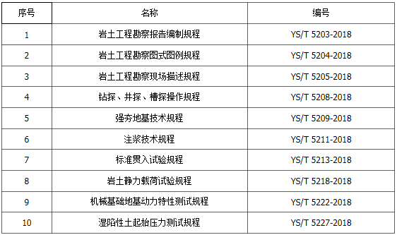 由中國(guó)有色金屬工業(yè)西安勘察設(shè)計(jì)研究院有限公司主編,會(huì)同中國(guó)有色金屬工業(yè)昆明勘察設(shè)計(jì)研究院有限公司、中國(guó)有色金屬工業(yè)長(zhǎng)沙勘察設(shè)計(jì)研究院有限公司等多家單位共同修訂的《巖土工程勘察報(bào)告編制規(guī)程》等10項(xiàng)行業(yè)標(biāo)準(zhǔn)于近日正式出版發(fā)行。