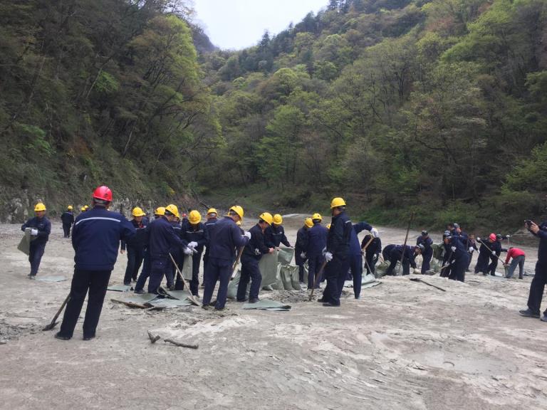 4月21日下午,銀母寺礦業(yè)舉行尾礦庫(kù)突發(fā)環(huán)境事件應(yīng)急演練。演練假設(shè)礦區(qū)突降暴雨,致使尾礦庫(kù)澄清區(qū)內(nèi)水位快速升高,壩面干灘200米處出現(xiàn)下陷險(xiǎn)情,隨時(shí)有潰壩危險(xiǎn),威脅下游群眾生命和財(cái)產(chǎn)安全。