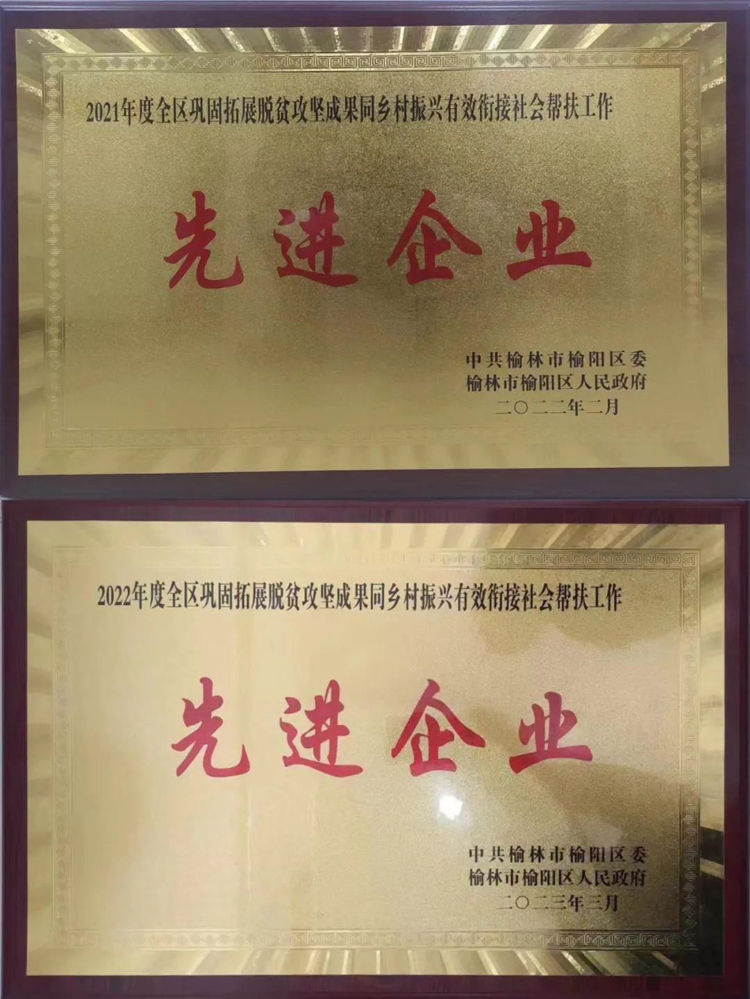 助力鄉(xiāng)村振興 踐行國(guó)企擔(dān)當(dāng)-榆林新材料集團(tuán)連續(xù)兩年榮獲榆陽(yáng)區(qū)鞏固拓展脫貧攻堅(jiān)同鄉(xiāng)村振興有效銜接社會(huì)幫扶工作“先進(jìn)企業(yè)”榮譽(yù)稱(chēng)號(hào)