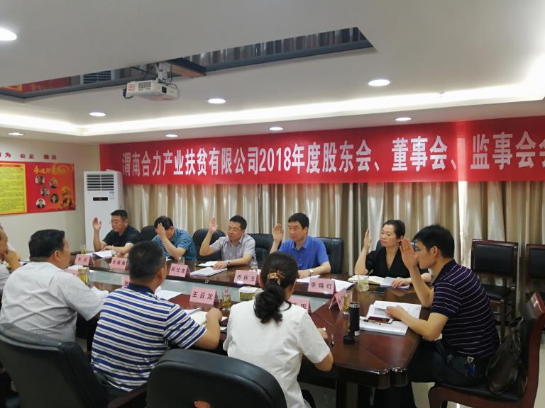 6月19日,渭南合力產(chǎn)業(yè)扶貧公司根據(jù)《公司法》《公司章程》召開了2018年度東大會、董事會、監(jiān)事會。股東代表、董事、監(jiān)事出席了會議,會議由董事長張軍春主持。會議審議通過了《2018年度工作總結(jié)及2019年工作計劃報告》《2018年度財務(wù)決算報告2019年財務(wù)預(yù)算報告》《2018年度董事會工作報告》《2018年度監(jiān)事會工作報告》《關(guān)于白水縣經(jīng)濟(jì)發(fā)展有限公司雷公循環(huán)經(jīng)濟(jì)產(chǎn)業(yè)園區(qū)產(chǎn)業(yè)扶貧標(biāo)準(zhǔn)化廠房建設(shè)項目的議案》等議案。
