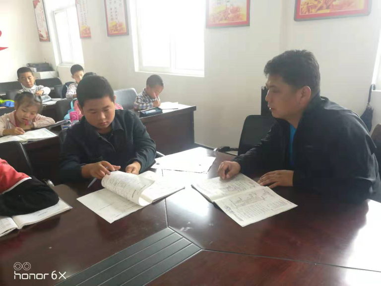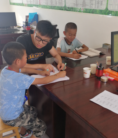 得知這一情況后,駐村工作隊(duì)決定在村上開辦暑期輔導(dǎo)班。隊(duì)員中楊威、呂金輝是本科畢業(yè),王長(zhǎng)江是研究生學(xué)歷,大家齊上陣,擔(dān)任義務(wù)輔導(dǎo)老師。同時(shí),駐村隊(duì)長(zhǎng)張濤了解到大寨村劉愛(ài)勤的小兒子李星良剛參加完高考的,成績(jī)遠(yuǎn)超一本線,也動(dòng)員他參與到輔導(dǎo)班的工作上來(lái)。大家一道為孩子們解答暑假作業(yè)中的難點(diǎn)、幫助孩子們進(jìn)行新課程的預(yù)習(xí)。為了更好地為孩子們答疑解惑,輔導(dǎo)班還建立了微信群,為實(shí)現(xiàn)遠(yuǎn)程課業(yè)輔導(dǎo)和家庭教育咨詢搭建了平臺(tái)。