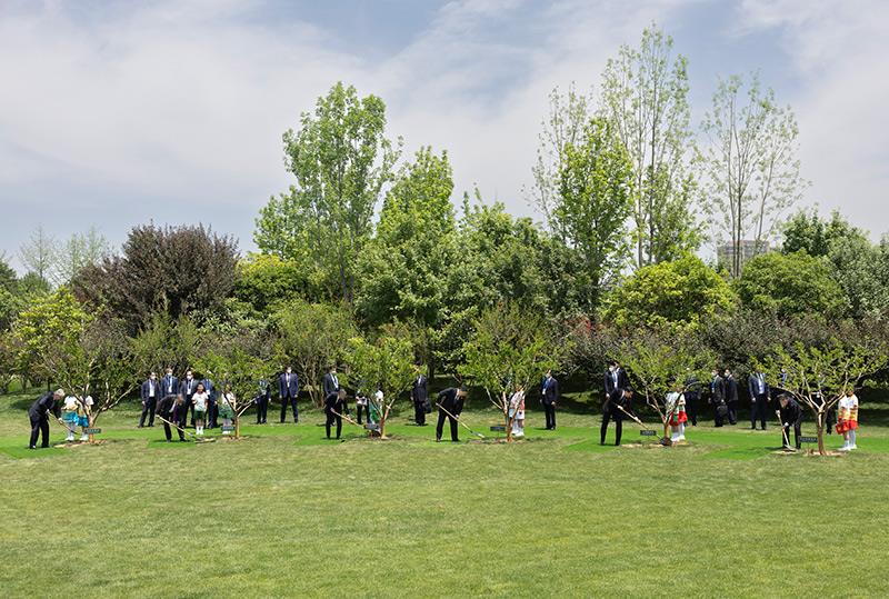 5月19日上午,國(guó)家主席習(xí)近平在陜西省西安市主持首屆中國(guó)-中亞峰會(huì)并發(fā)表題為《攜手建設(shè)守望相助、共同發(fā)展、普遍安全、世代友好的中國(guó)-中亞命運(yùn)共同體》的主旨講話。峰會(huì)結(jié)束后,習(xí)近平和中亞五國(guó)元首共同種下六棵石榴樹(shù),既見(jiàn)證中國(guó)同中亞千年友好交往,也象征中國(guó)同中亞緊密團(tuán)結(jié)合作,更寄托對(duì)中國(guó)-中亞關(guān)系美好未來(lái)的期待。新華社記者 劉彬 攝