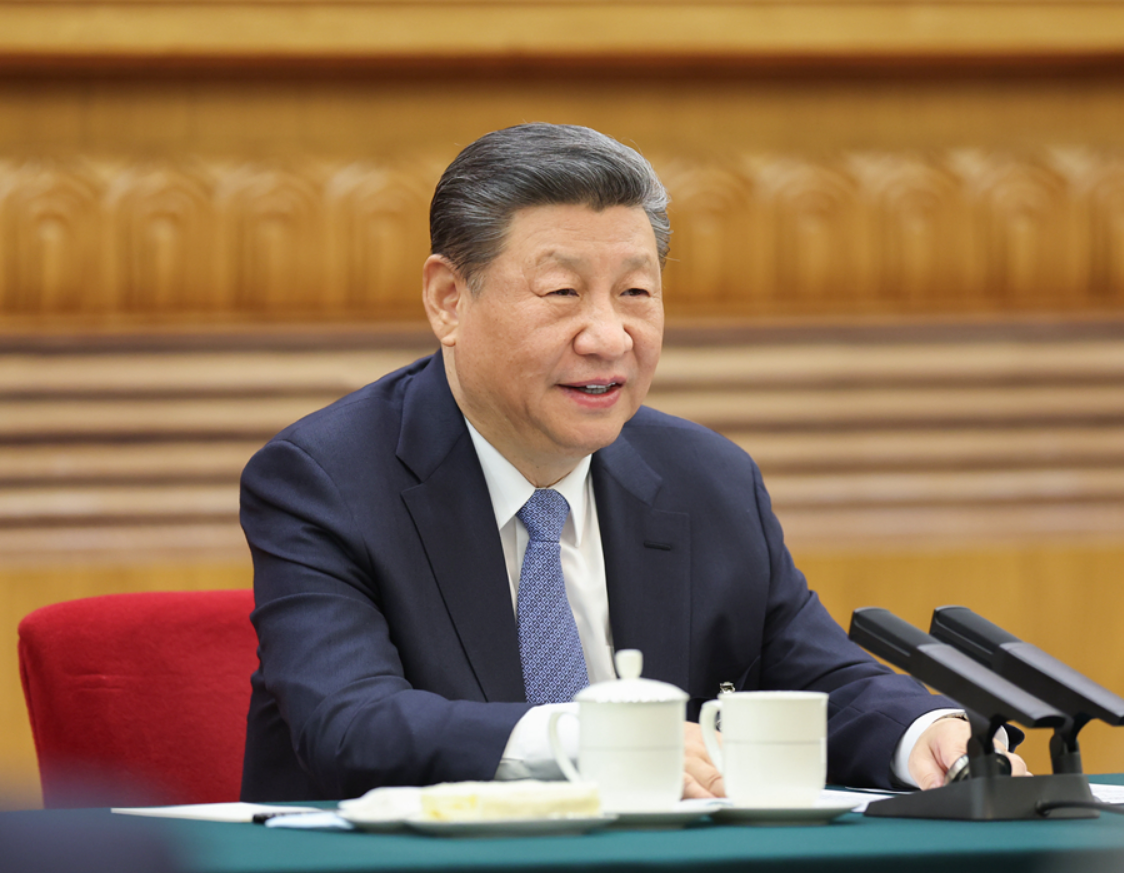 3月5日,中共中央總書記、國家主席、中央軍委主席習近平參加他所在的十四屆全國人大二次會議江蘇代表團審議。新華社記者 岳月偉 攝