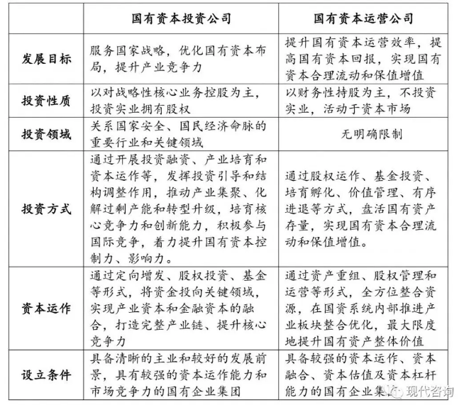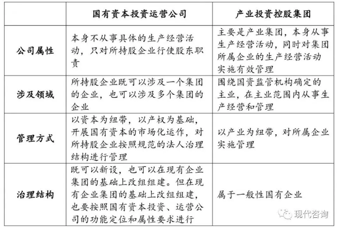 此外,國(guó)有資本投資運(yùn)營(yíng)公司和產(chǎn)業(yè)投資控股集團(tuán)也是有區(qū)別的,具體區(qū)別如下表所示: