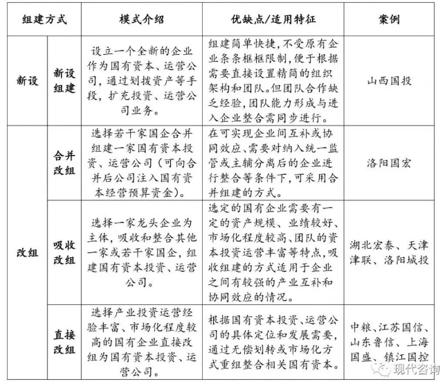 表3 國(guó)有資本投資運(yùn)營(yíng)公司組建方式