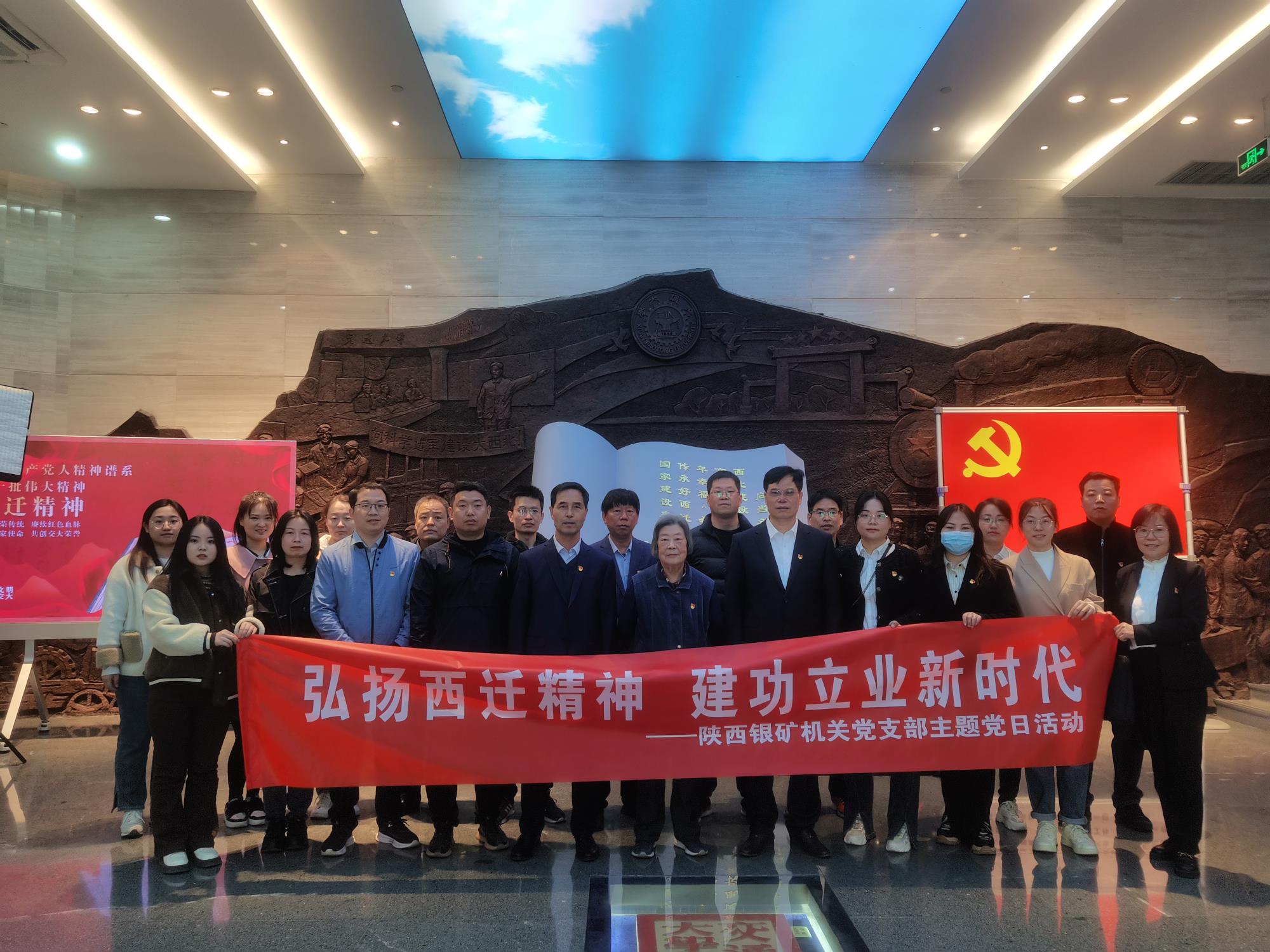 為深入學(xué)習(xí)貫徹黨的二十大精神,持續(xù)引導(dǎo)機(jī)關(guān)黨員堅(jiān)定理想信念、牢記初心使命、汲取奮進(jìn)力量,進(jìn)一步增強(qiáng)機(jī)關(guān)黨支部凝聚力、戰(zhàn)斗力。3月22日,陜西銀礦機(jī)關(guān)黨支部組織黨員到交大西遷博物館開展“弘揚(yáng)西遷精神 建功立業(yè)新時(shí)代”主題黨日活動(dòng)。機(jī)關(guān)黨支部全體黨員和入黨積極分子共計(jì)20余人參加活動(dòng)。