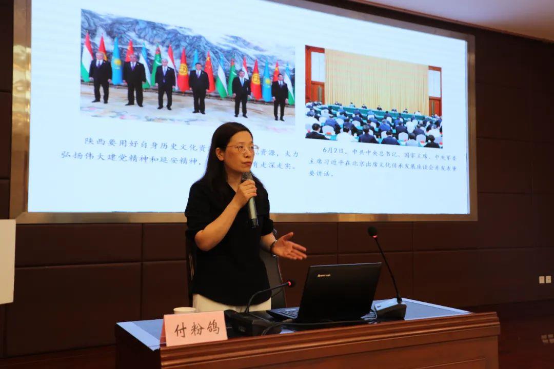 省委理論講師團專家學(xué)者、西北大學(xué)馬克思主義學(xué)院付粉鴿教授作了題為《利用好歷史文化資源,勇立潮頭,在推進文化自信自強上展現(xiàn)陜西擔(dān)當(dāng)》的專題宣講,宣講從推進文化自信自強,努力建設(shè)中華民族現(xiàn)代文明、挖掘和利用好自身歷史文化資源,助推陜西高質(zhì)量發(fā)展、勇立潮頭,為鑄就社會主義文化新輝煌貢獻陜西力量三個方面,深入淺出、生動活潑的闡述了中華優(yōu)秀傳統(tǒng)文化的當(dāng)代價值以及充分發(fā)揮陜西歷史文化資源優(yōu)勢,做強做優(yōu)陜西文化產(chǎn)業(yè),全面深入解讀了習(xí)近平總書記在聽取陜西省委和省政府工作匯報時的重要講話精神。報告思路清晰、主題明確,為與會人員上了一堂生動的傳統(tǒng)文化課。