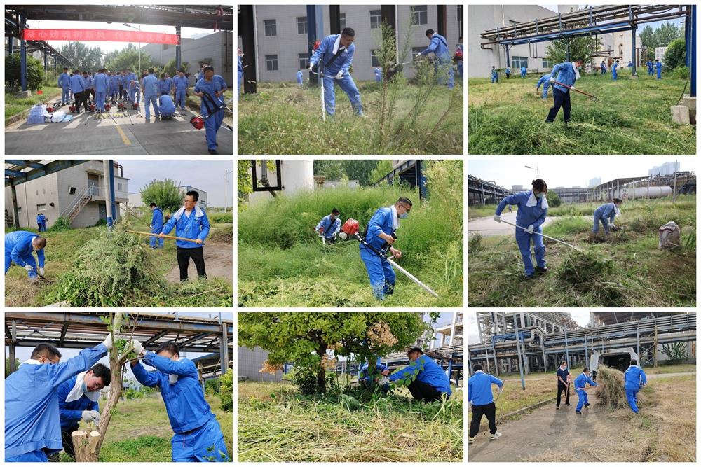 除草現(xiàn)場(chǎng),廣大黨員干部職工協(xié)作配合,全力投入,除草、運(yùn)草、清理井然有序,大家干勁十足。割草勞動(dòng)中,大家全然不顧汗水浸透了衣服,草屑沾滿了頭發(fā)和眉梢。經(jīng)過5天的不懈努力,完成了廠區(qū)65畝綠化面積的雜草清理工作,整個(gè)廠區(qū)煥然一新,雜草火災(zāi)隱患得到了有效化解。