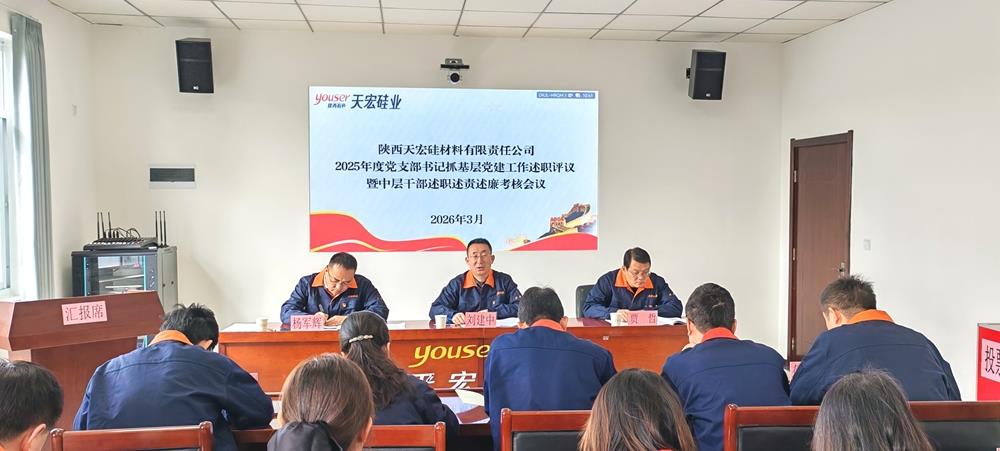 3月2日,天宏硅業(yè)召開2025年度黨支部書記抓基層黨建工作述職評議暨中層干部述職述責(zé)述廉考核會議。