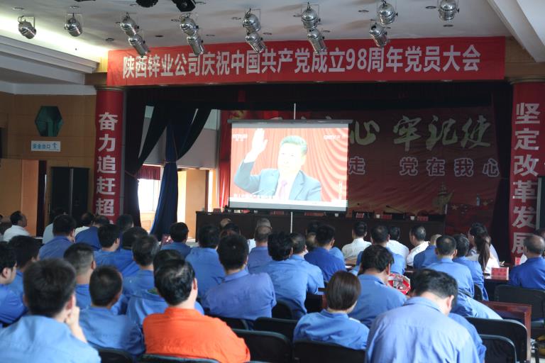 2019年6月24日,陜西鋅業(yè)公司慶祝建黨98周年黨員大會在辦公樓四樓多功能廳召開,公司黨委書記何學斌向全體黨員講了一節(jié)精彩的黨課,公司黨政班子、全體黨員及班組長以上管理人員共320余人參加會議,黨委副書記、總經(jīng)理崔旭東主持。