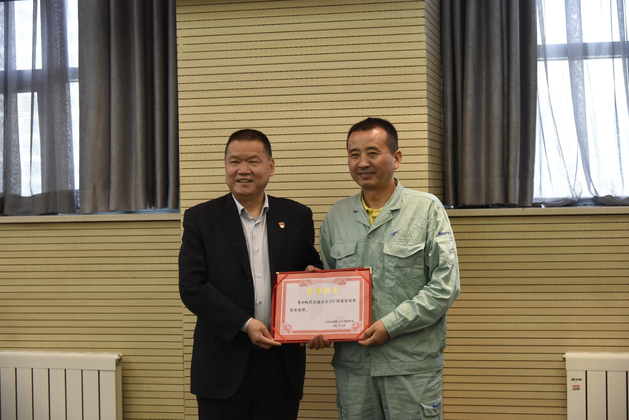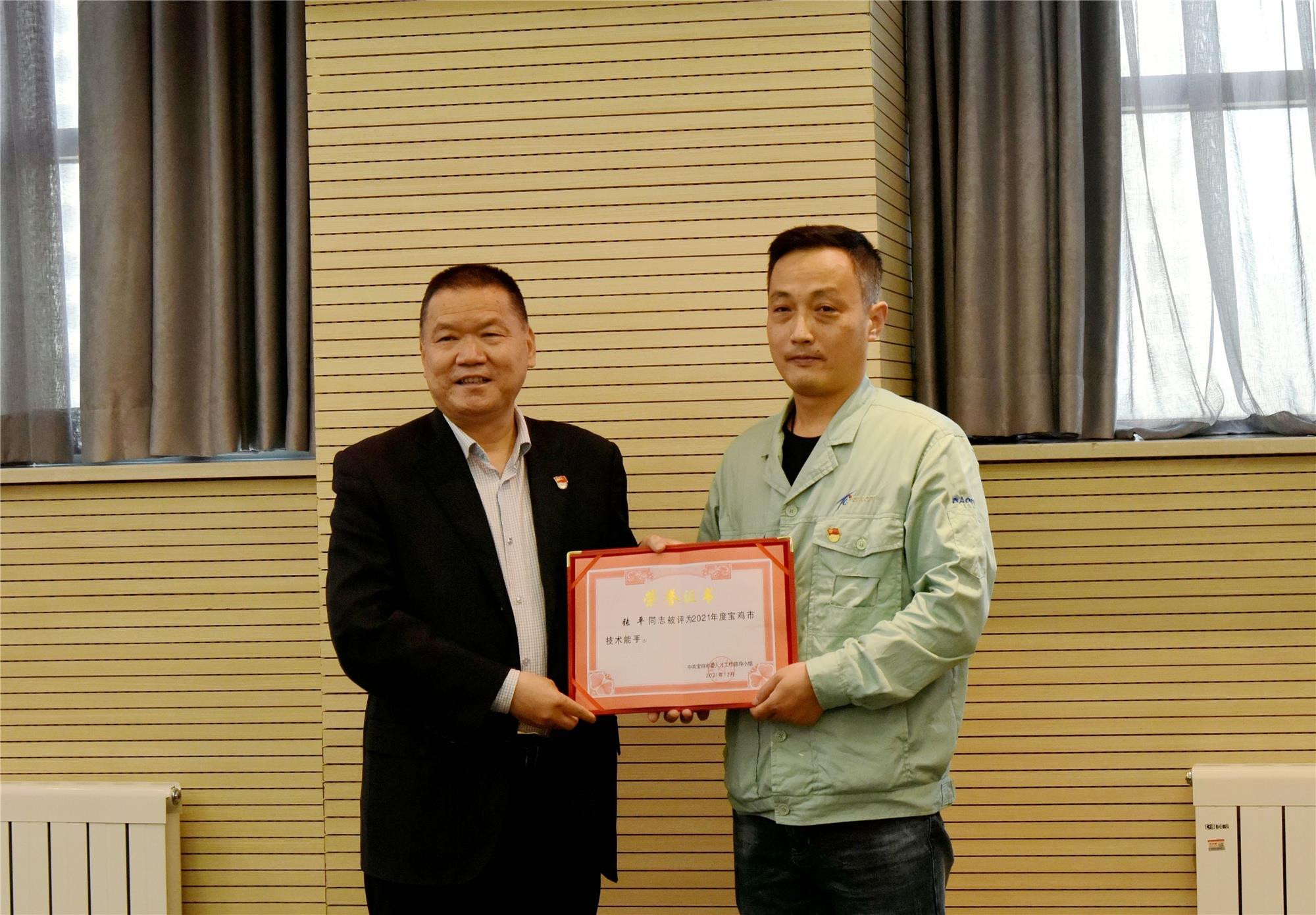 會(huì)上,王建超還為榮獲2021年度寶雞市首席技師的肖小紅和寶雞市技術(shù)能手的張平頒發(fā)了榮譽(yù)證書(shū)。
