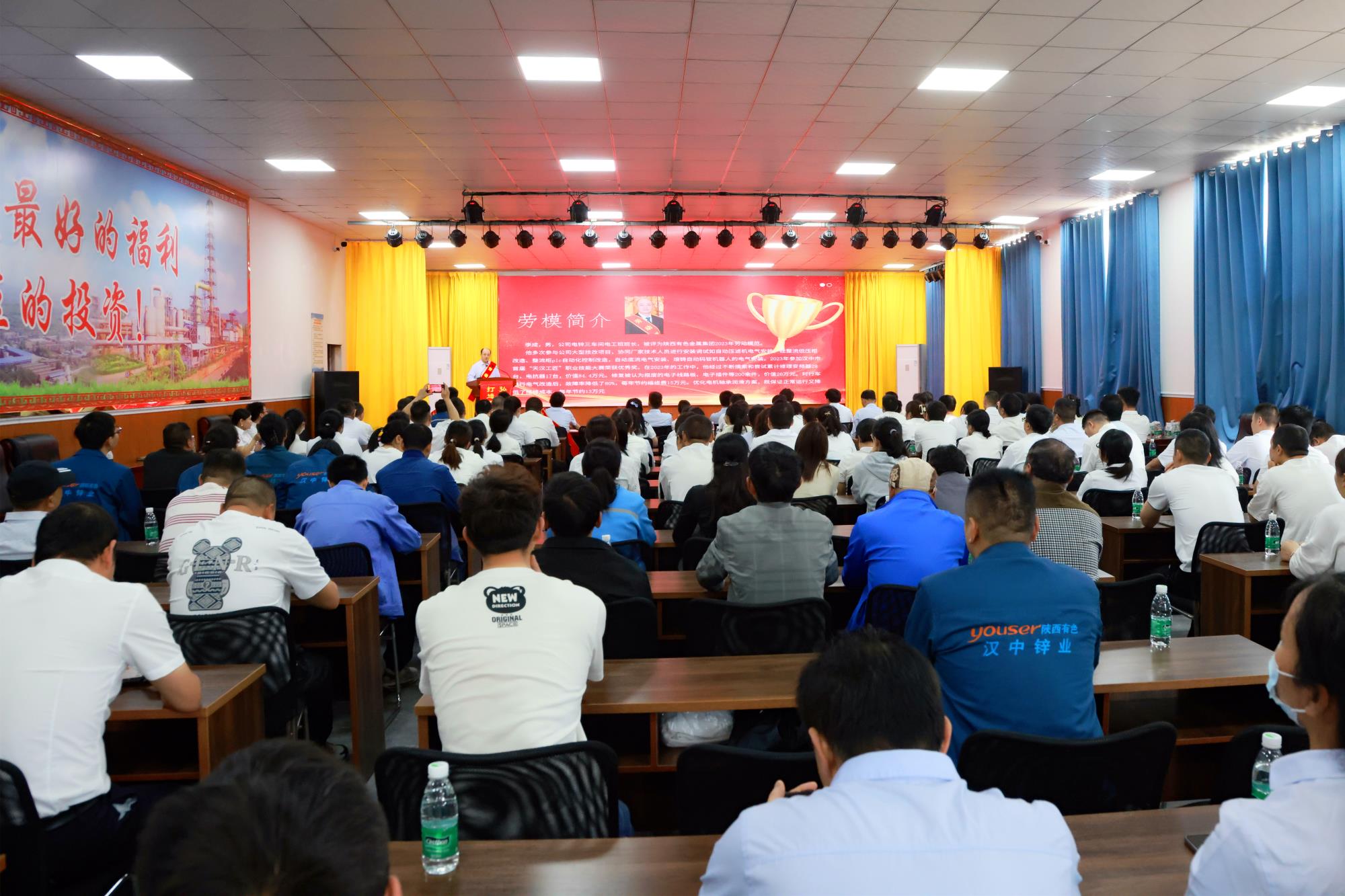 為充分發(fā)揮勞動模范和先進人物的示范引領(lǐng)作用,調(diào)動廣大職工工作積極性和創(chuàng)造性,在公司上下營造尊重勞模、學(xué)習(xí)先進的濃厚氛圍,為公司轉(zhuǎn)型發(fā)展提供有力支撐,4月26日,在“五一”國際勞動節(jié)來臨之際,漢中鋅業(yè)工會在多功能廳舉辦“弘揚勞模精神 打造工匠文化”勞動模范宣講報告會。公司黨委副書記、工會主席路延忠,黨委委員、紀(jì)委書記陳庭靜,公司工會委員,基層支部書記、工會主席,職工及青年代表近150人參加。