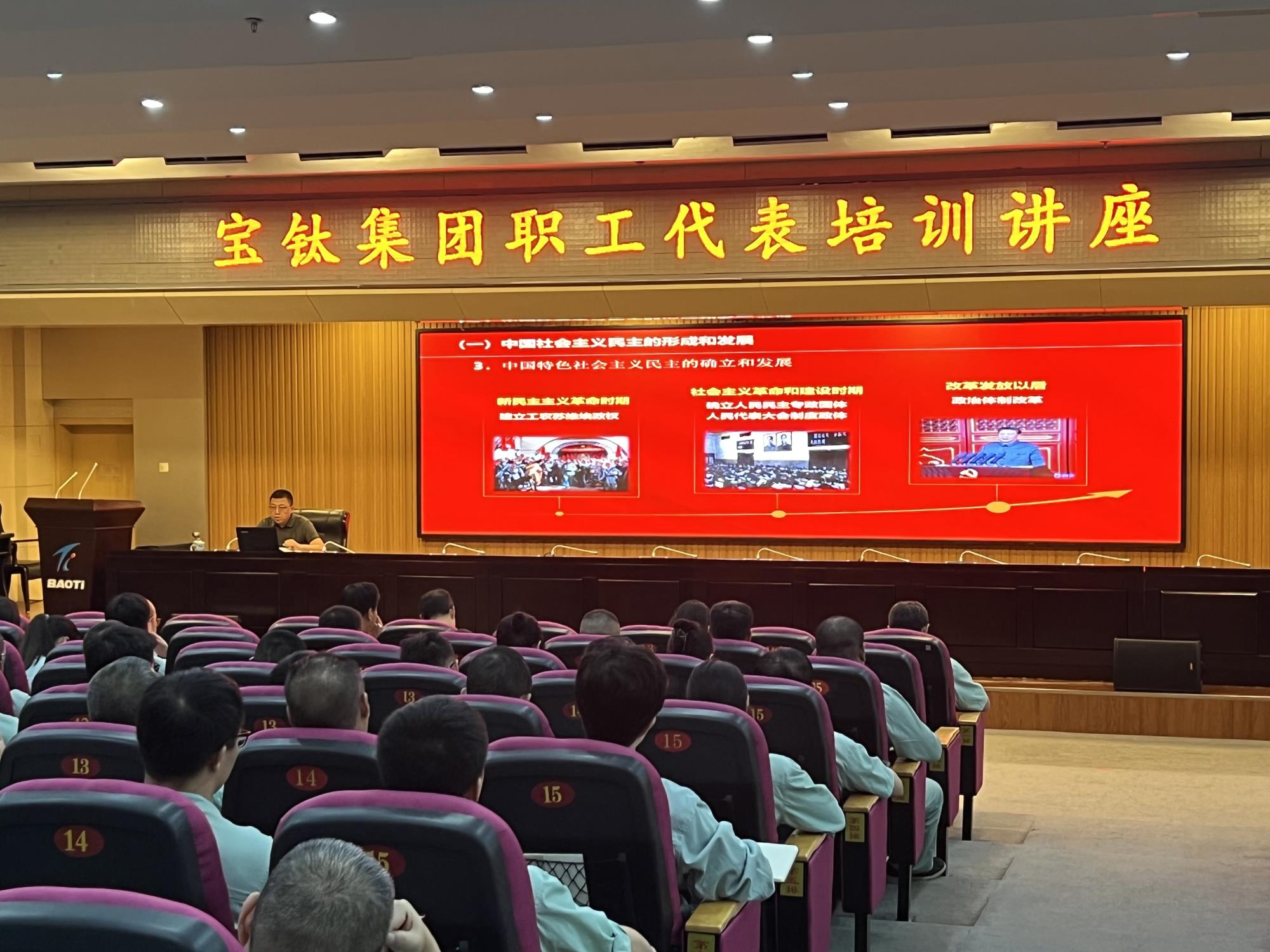 為提高職工代表工作水平,切實做好民主管理工作,6月3日,寶鈦集團工會在寶鈦賓館 7 樓學術(shù)報告廳舉辦了職工代表培訓講座。寶鈦集團194名職工代表聆聽講座。