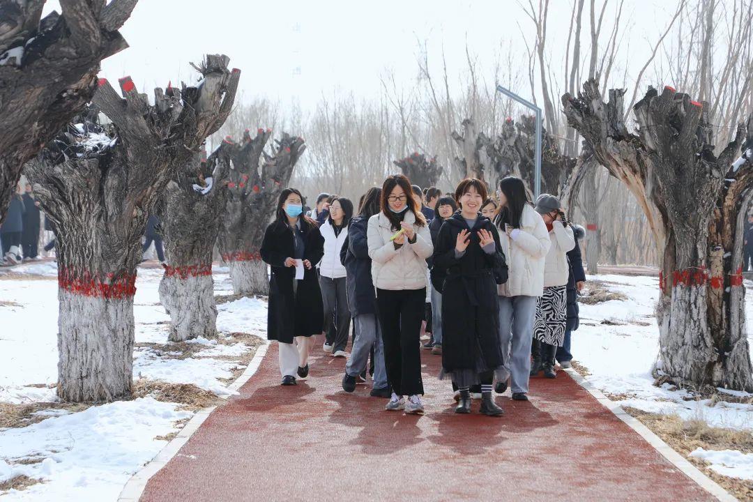 全程2公里的環(huán)湖步道化身為健康長廊,一夜春雪簌簌,道路兩旁積雪堆疊,滿是大自然饋贈(zèng)的浪漫與詩意。女職工們?nèi)宄扇航Y(jié)伴,既有你追我趕的活力比拼,也有駐足留影的歡聲笑語。沿途設(shè)立的打卡拍照點(diǎn)和兩個(gè)"能量補(bǔ)給站"貼心提供姜汁可樂、小零食,為奮進(jìn)的腳步注入滿滿元?dú)?。本次活?dòng)創(chuàng)新融入趣味挑戰(zhàn)元素,“不服來Battle”“奔跑小分隊(duì)”“圓舞曲”“步步為贏”等四大主題游戲互動(dòng)沿步道分布。女職工們?cè)谶\(yùn)動(dòng)間隙參與挑戰(zhàn),熱情高漲。