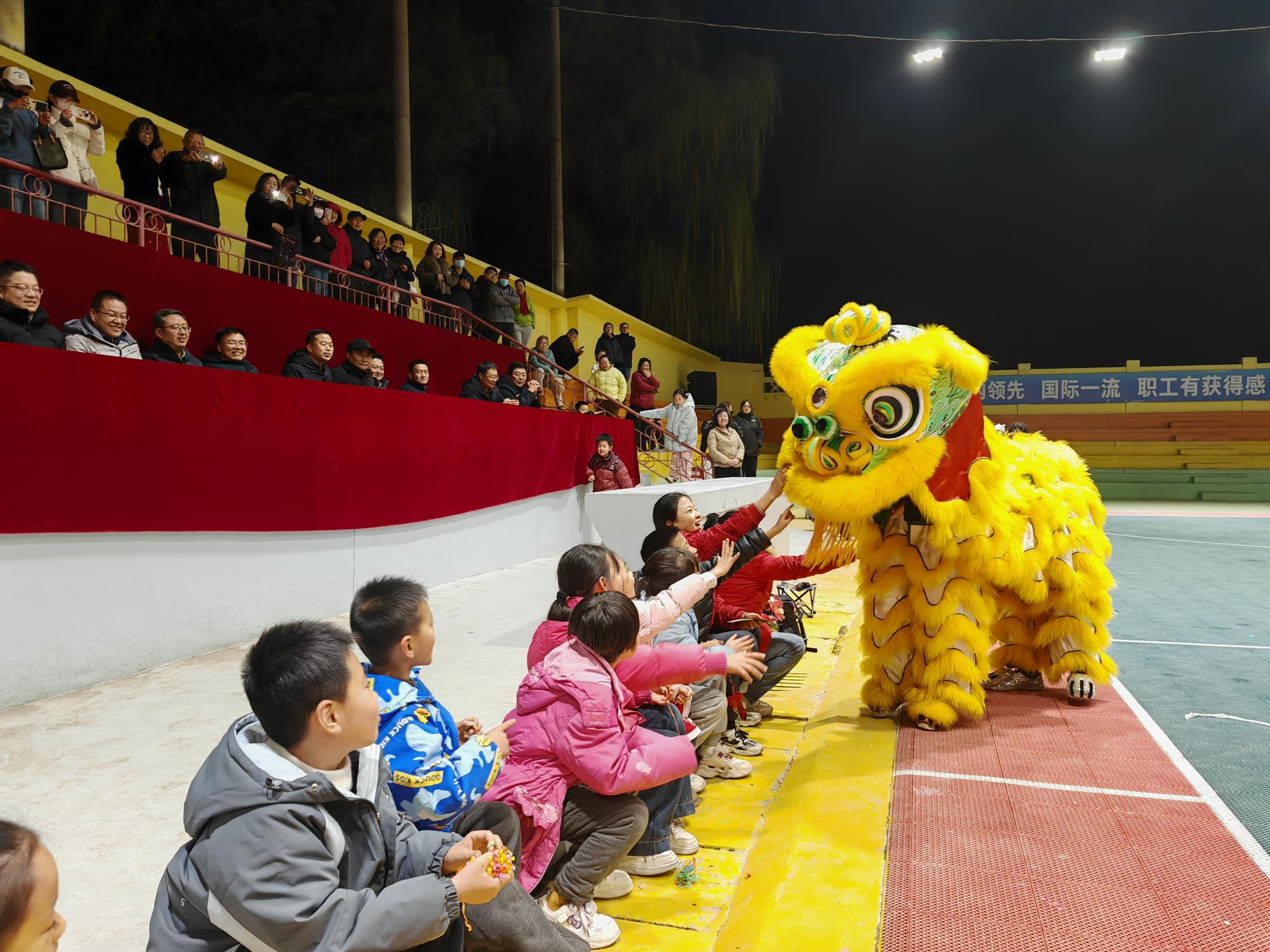 晚上7點,寶鈦老區(qū)燈光球場華燈璀璨、人潮涌動,元宵游園活動在喜慶歡快的舞蹈《開門紅》中正式拉開帷幕。氣勢磅礴的《彩龍舞東方》驚艷登場,飛天龍燈在夜空中盤旋升騰,瞬間點燃全場熱情;剛?cè)岵摹短珮O表演》行云流水,盡顯寶鈦人干事創(chuàng)業(yè)張弛有度、步履鏗鏘的精神風(fēng)貌;舞蹈《盛世歡歌》《舞動鈦城》節(jié)奏明快、活力四射,生動展現(xiàn)鈦城兒女昂揚向上、奮發(fā)有為的時代風(fēng)采;緊接著登場的舞龍表演騰躍穿梭、氣勢如虹,將現(xiàn)場氛圍一次次推向高潮;古韻十足的《大唐百戲》妙趣橫生,帶領(lǐng)觀眾沉浸式穿越市井繁華;兩只醒獅騰挪跳躍、威武靈動,與現(xiàn)場觀眾熱情互動、納祥送福,最終獅口吐幅——“恭喜發(fā)財 萬事騰意”的美好祝福引發(fā)全場陣陣歡呼。