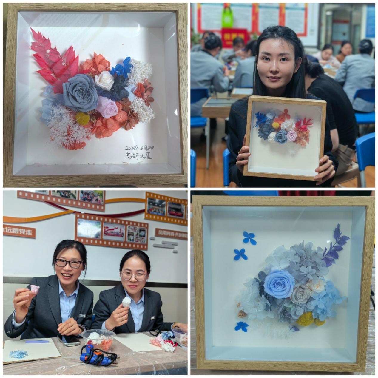 活動(dòng)現(xiàn)場(chǎng),工會(huì)向全體女職工致以節(jié)日問候,感謝大家在各自崗位上的辛勤付出與堅(jiān)守。在花藝?yán)蠋熤笇?dǎo)下,大家精心選材、巧妙搭配,親手制作出一件件精致獨(dú)特的永生花作品?,F(xiàn)場(chǎng)氛圍溫馨熱烈,女職工們?cè)趧?chuàng)作中舒緩壓力、增進(jìn)情誼,收獲滿滿幸福感。