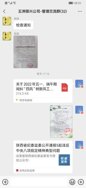 節(jié)前有部署。一是結(jié)合陜西銀礦實(shí)際,及時(shí)印發(fā)《關(guān)于做好五一端午期間糾治“四風(fēng)”工作的通知》,對節(jié)日期間糾治“四風(fēng)”工作進(jìn)行合理安排部署。二是通過公司官網(wǎng)、微信公眾號、工作群等網(wǎng)絡(luò)媒介,做好廉潔提醒宣傳,暢通舉報(bào)渠道,通報(bào)違反中央八項(xiàng)規(guī)定精神典型案例,筑牢黨員干部作風(fēng)防線,嚴(yán)防死守杜絕“節(jié)日腐敗”。三是對公司資產(chǎn)財(cái)務(wù)部、黨群工作部、辦公室等重要部室負(fù)責(zé)人進(jìn)行節(jié)前廉潔提醒,要求嚴(yán)格履行崗位職責(zé),認(rèn)真貫徹執(zhí)行中央八項(xiàng)規(guī)定精神,嚴(yán)禁節(jié)假日期間違規(guī)收送禮品和宴請、違規(guī)使用公款吃喝旅游、公車私用等違規(guī)違紀(jì)行為的發(fā)生,時(shí)刻注意言行舉止,樹立良好的黨員干部形象。嚴(yán)格落實(shí)疫情防控各項(xiàng)措施,切實(shí)做好疫情防控工作,全方位做好節(jié)日期間糾治"四風(fēng)"工作。