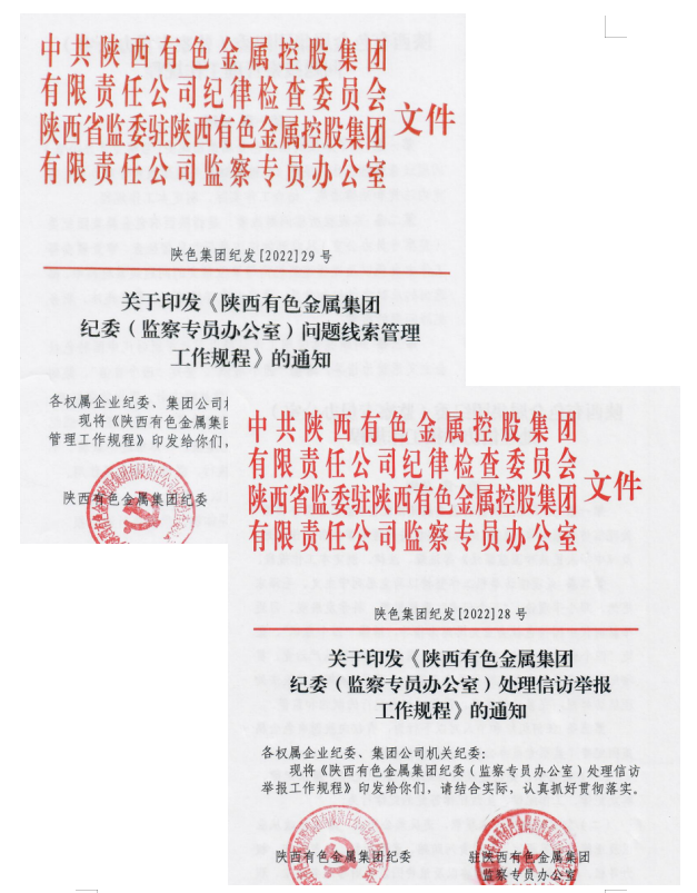 近日,陜西有色金屬集團紀(jì)委依據(jù)中央紀(jì)委印發(fā)的《紀(jì)檢監(jiān)察機關(guān)問題線索管理辦法》等黨內(nèi)法規(guī),結(jié)合以往開展監(jiān)督檢查審查調(diào)查工作經(jīng)驗,分別研究制定并向權(quán)屬企業(yè)紀(jì)委下發(fā)了《信訪舉報工作規(guī)程》和《問題線索管理工作規(guī)程》(以下簡稱規(guī)程)。前者從信訪舉報的反映方式、受理、分類、分辦流轉(zhuǎn)、辦理要求、監(jiān)督統(tǒng)計、綜合運用等方面明確了信訪件從受理到處置的全流程要求,后者從問題線索的甄別、篩選、流轉(zhuǎn)、處置、監(jiān)督等方面對線索處置各環(huán)節(jié)職責(zé)任務(wù)進行了明確。