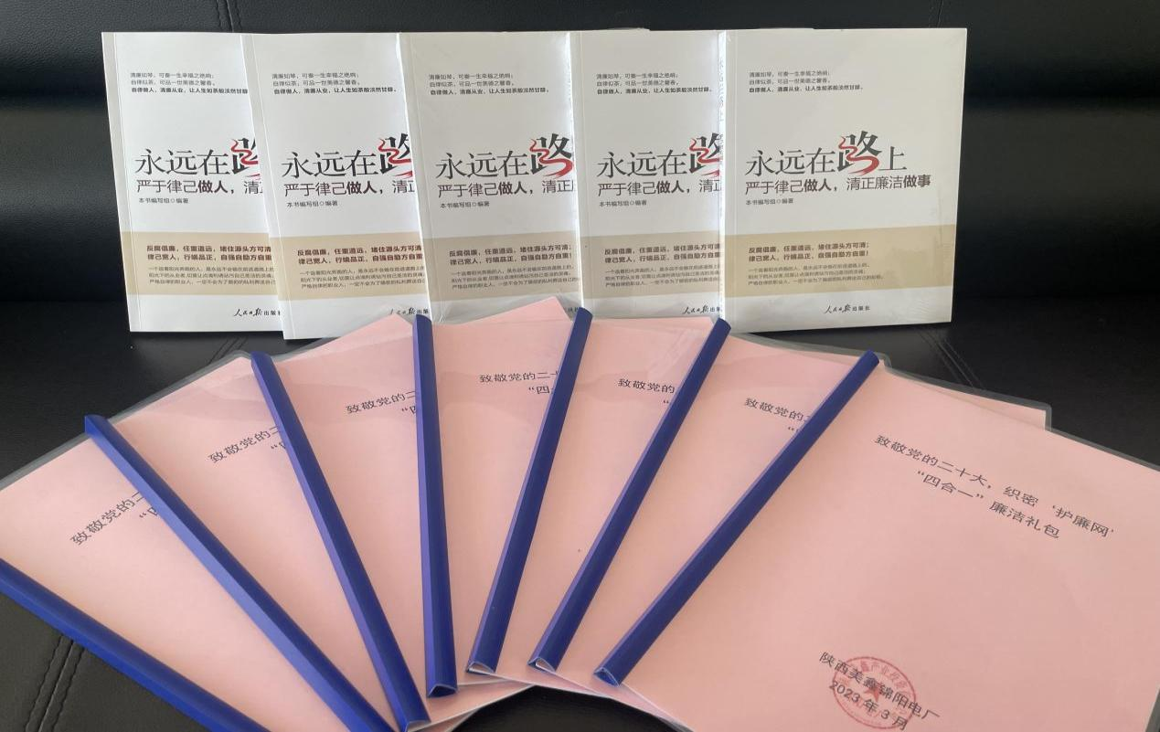 為確?;顒幼呱钭邔?,電廠還為大家購買了《永遠在路上:嚴(yán)于律己做人,清正廉潔做事》廉潔書籍,制作了“四合一”廉潔大禮包(即一份廉潔提醒、一份自律準(zhǔn)則、一份工作條例、一本清廉書籍),并發(fā)至每位職工手中。